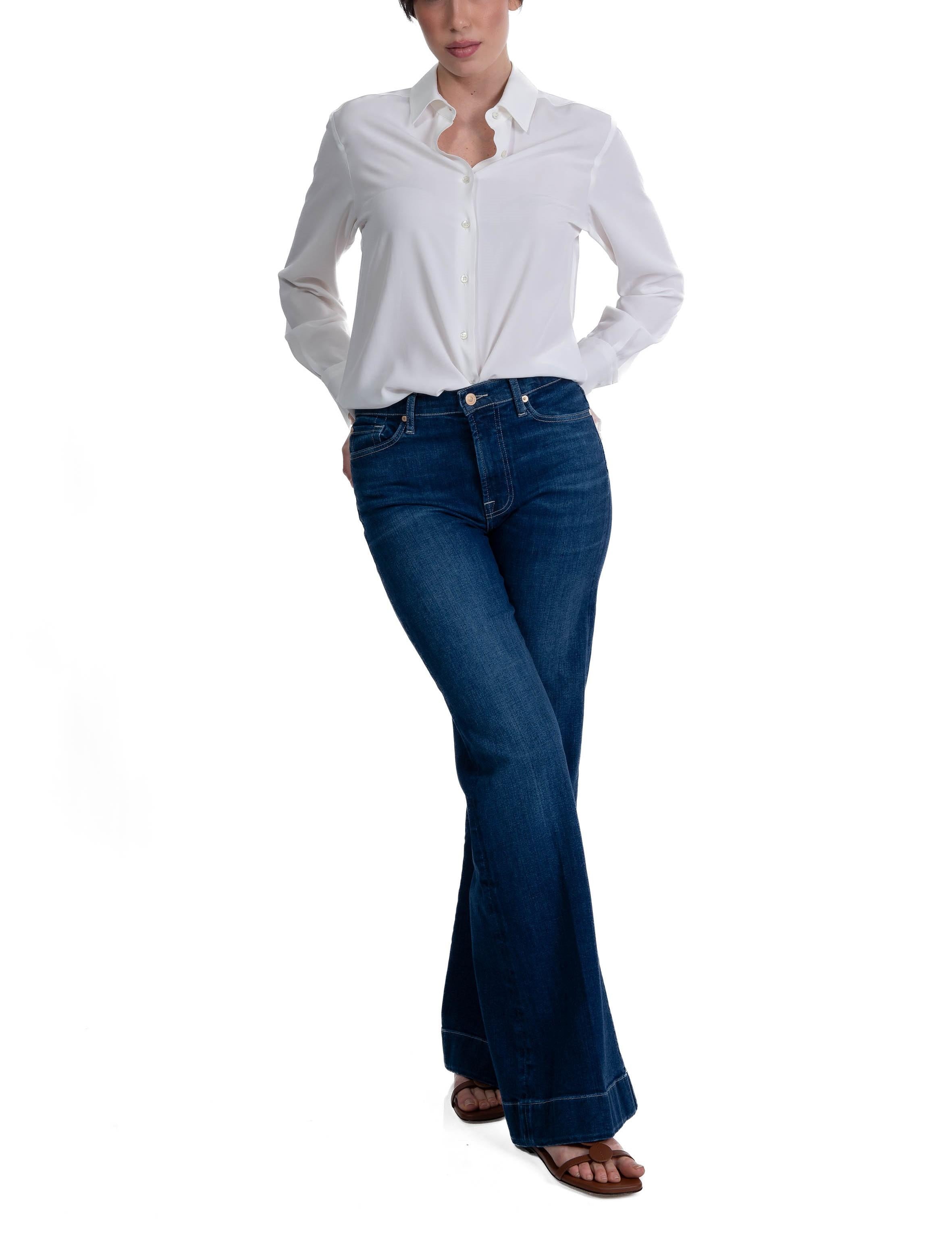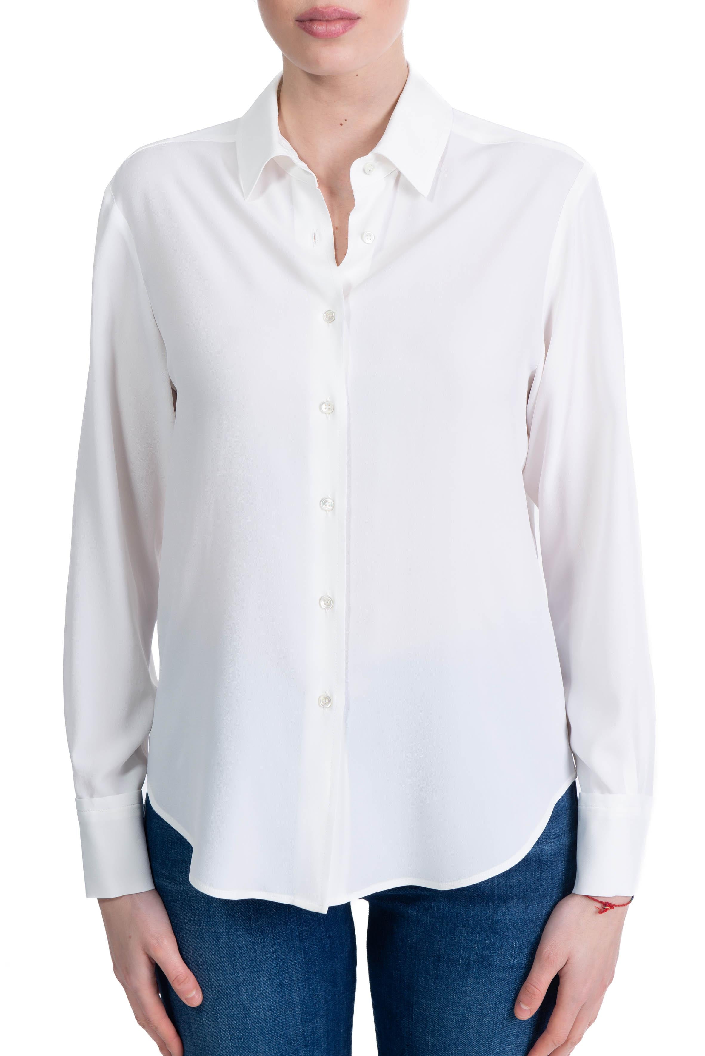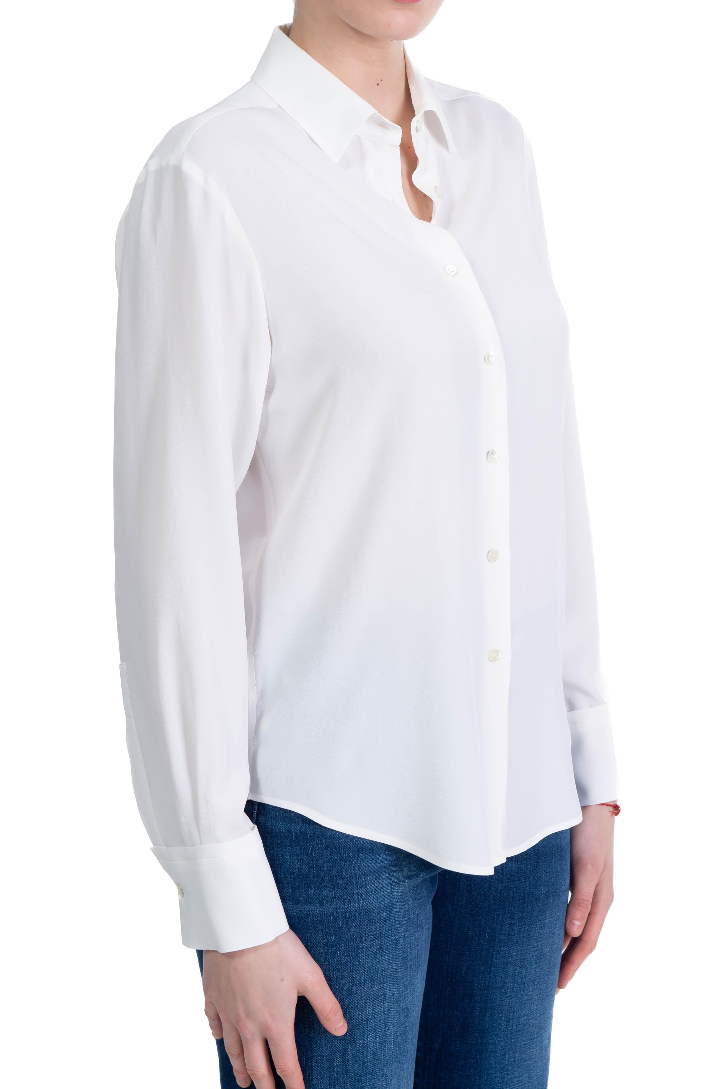 White silk blend shirt from ALICE MILLER, pointed collar, front button closure, close fit.