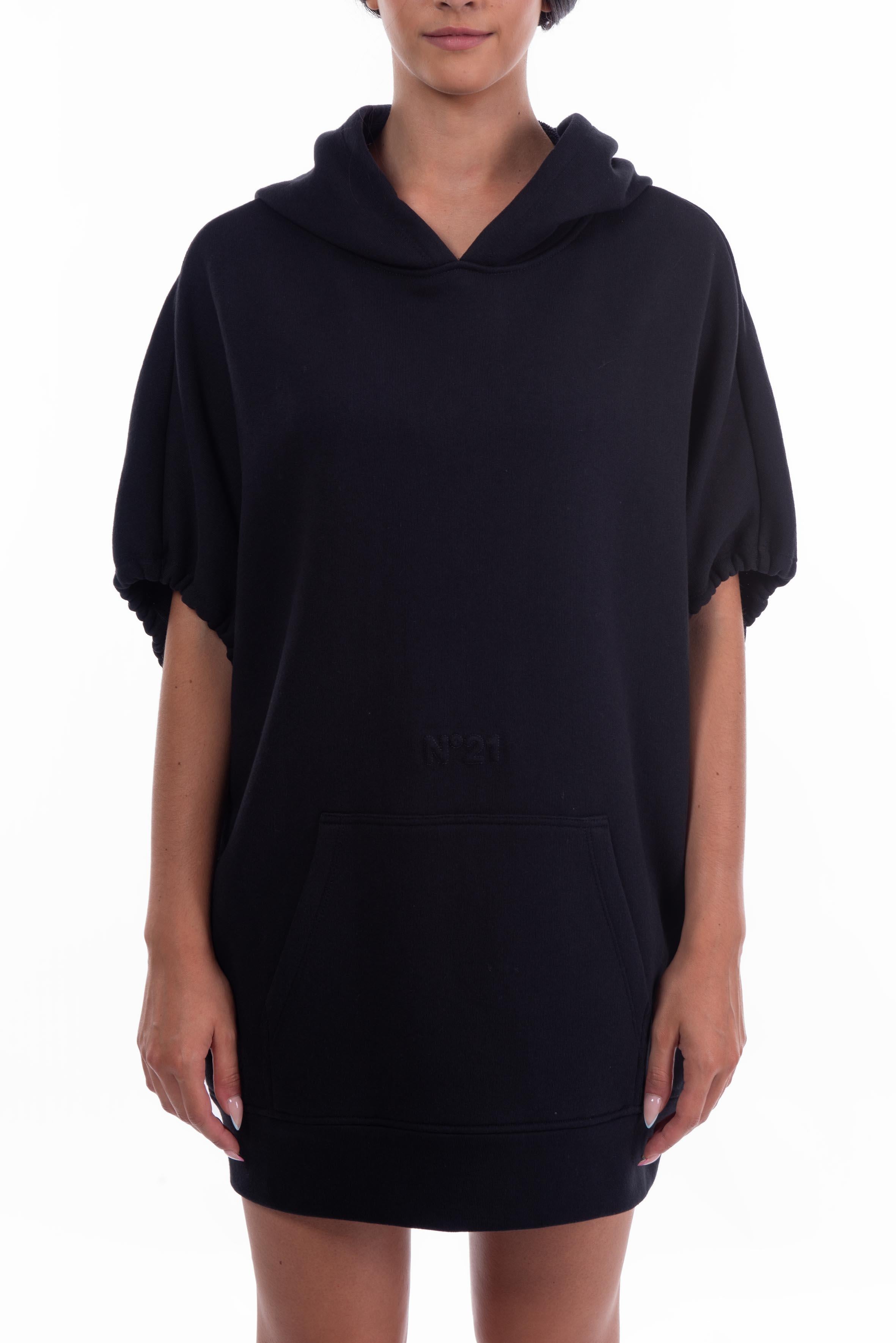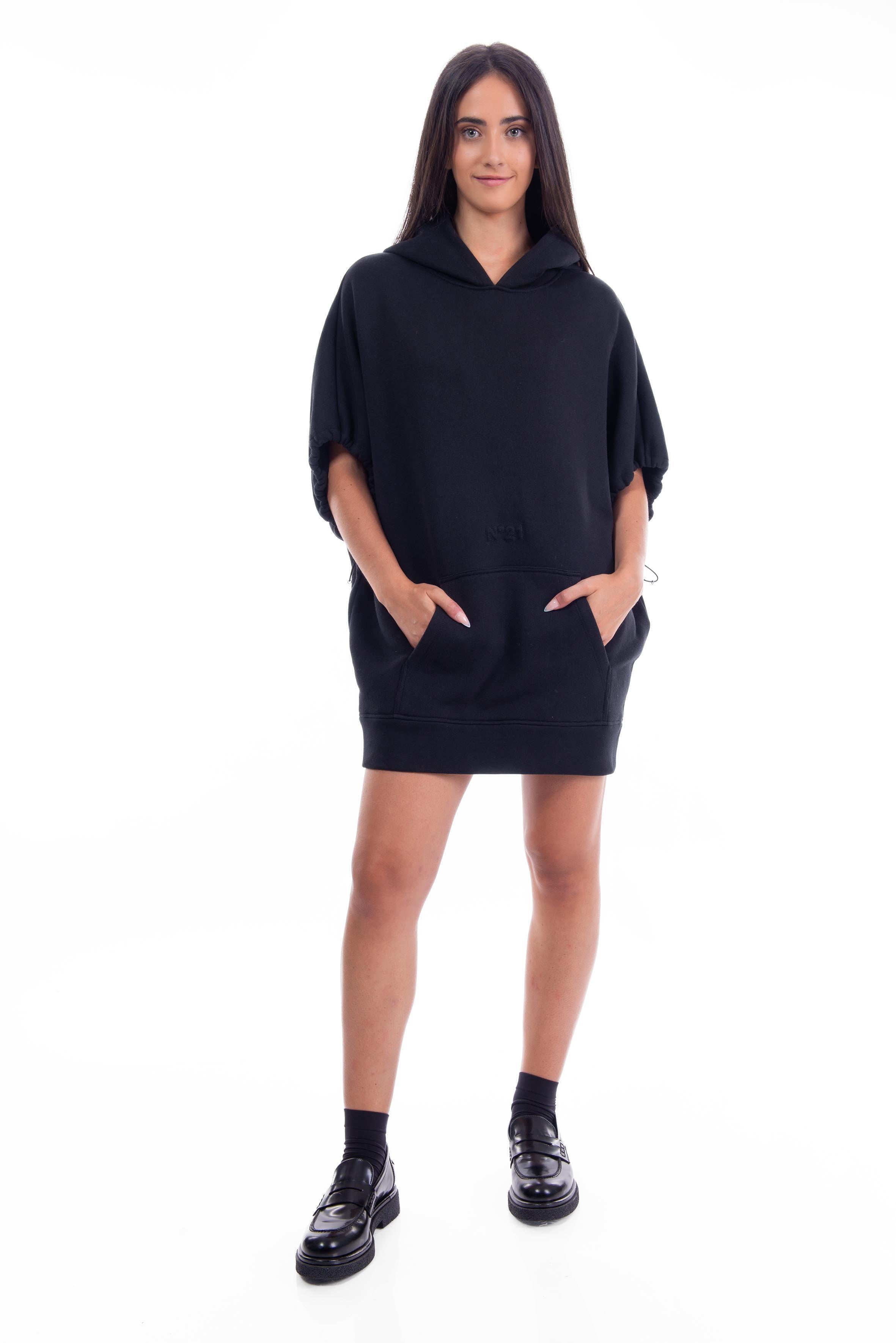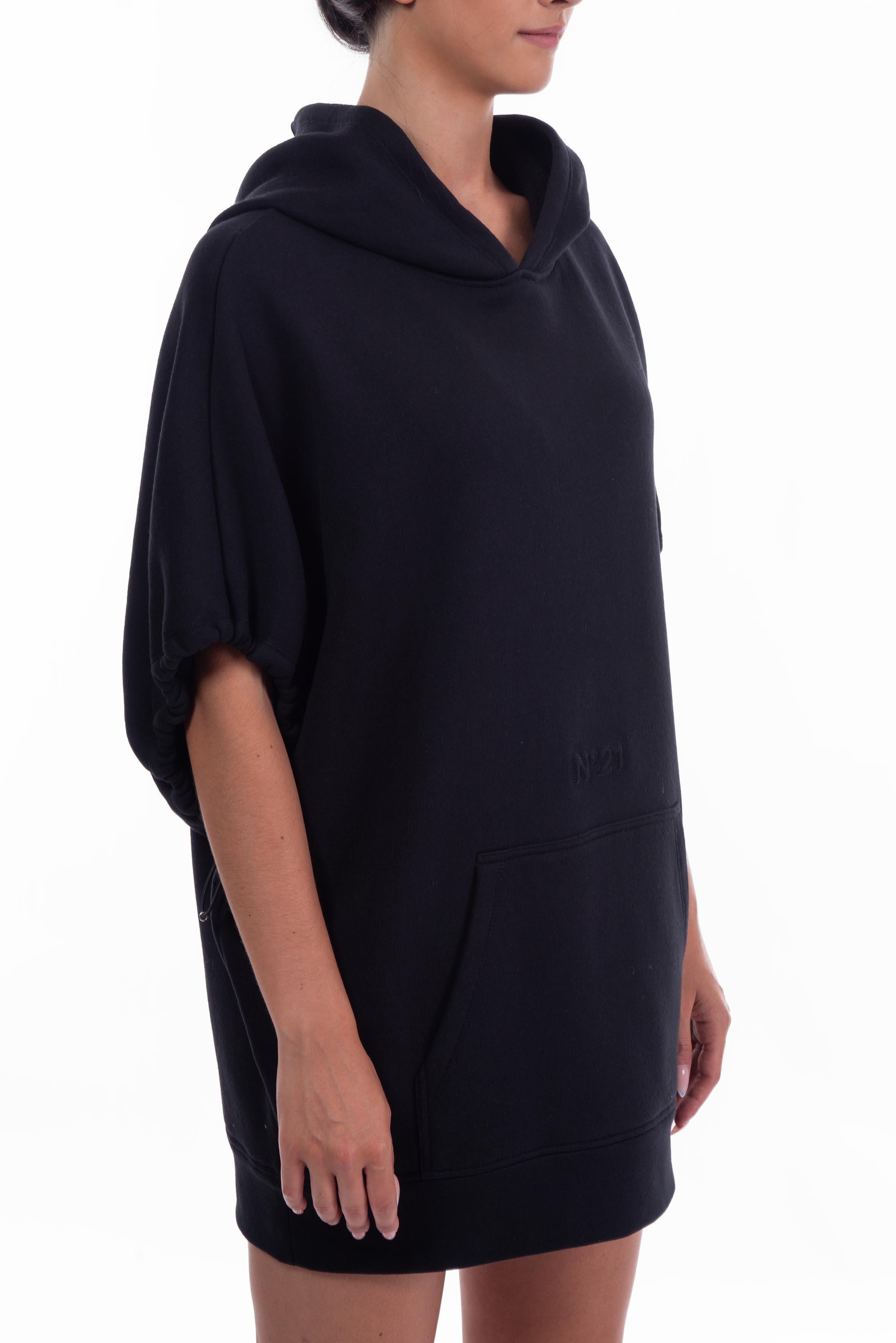 Oversized black sweatshirt by N21, back hood, 3/4 sleeves with elastic coulis.