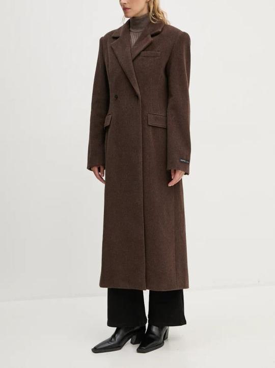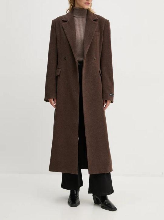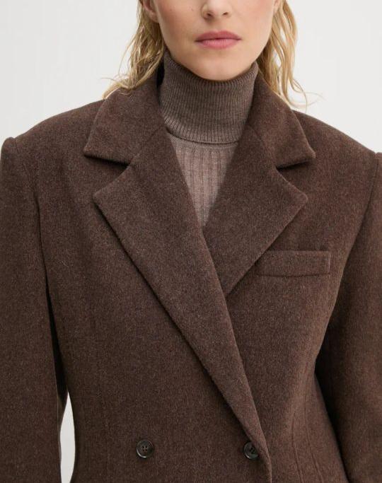 Long Coat Coat with narrow waist, broad shoulders, double-breasted and long darts at the waist for a tailored fit.