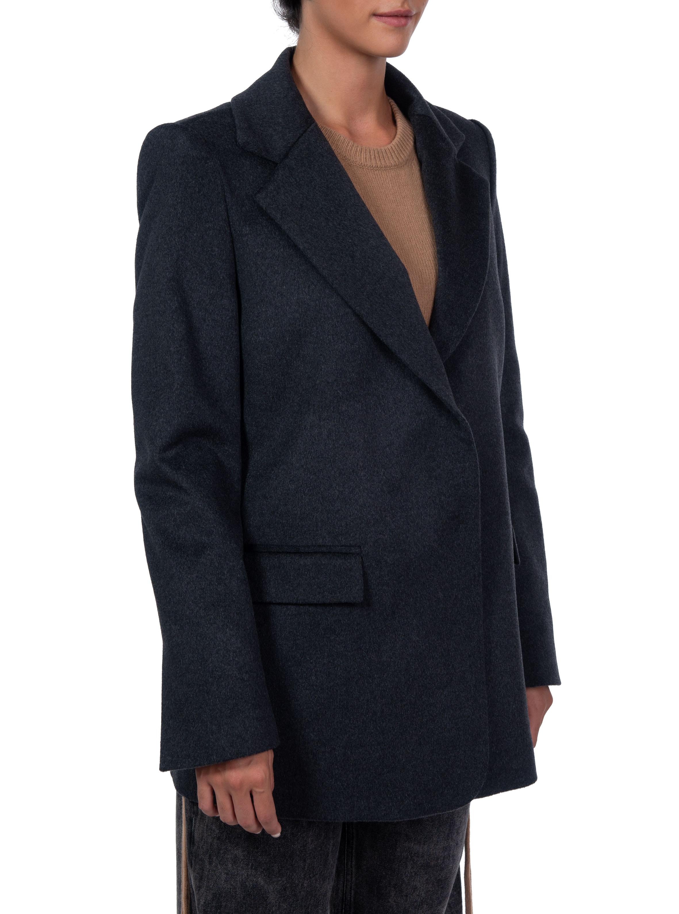 Gray wool over jacket from Federica Tosi featuring a single-breasted design, a concealed snap button closure, classic lapels, flap pockets, a center back vent, and a full lining.