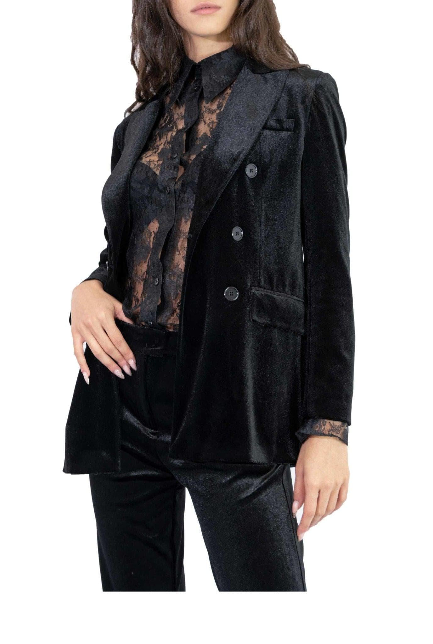 Slightly fitted, double-breasted design with front closure, side flap pockets, lapels, back vent, button cuffs. Slim fit.