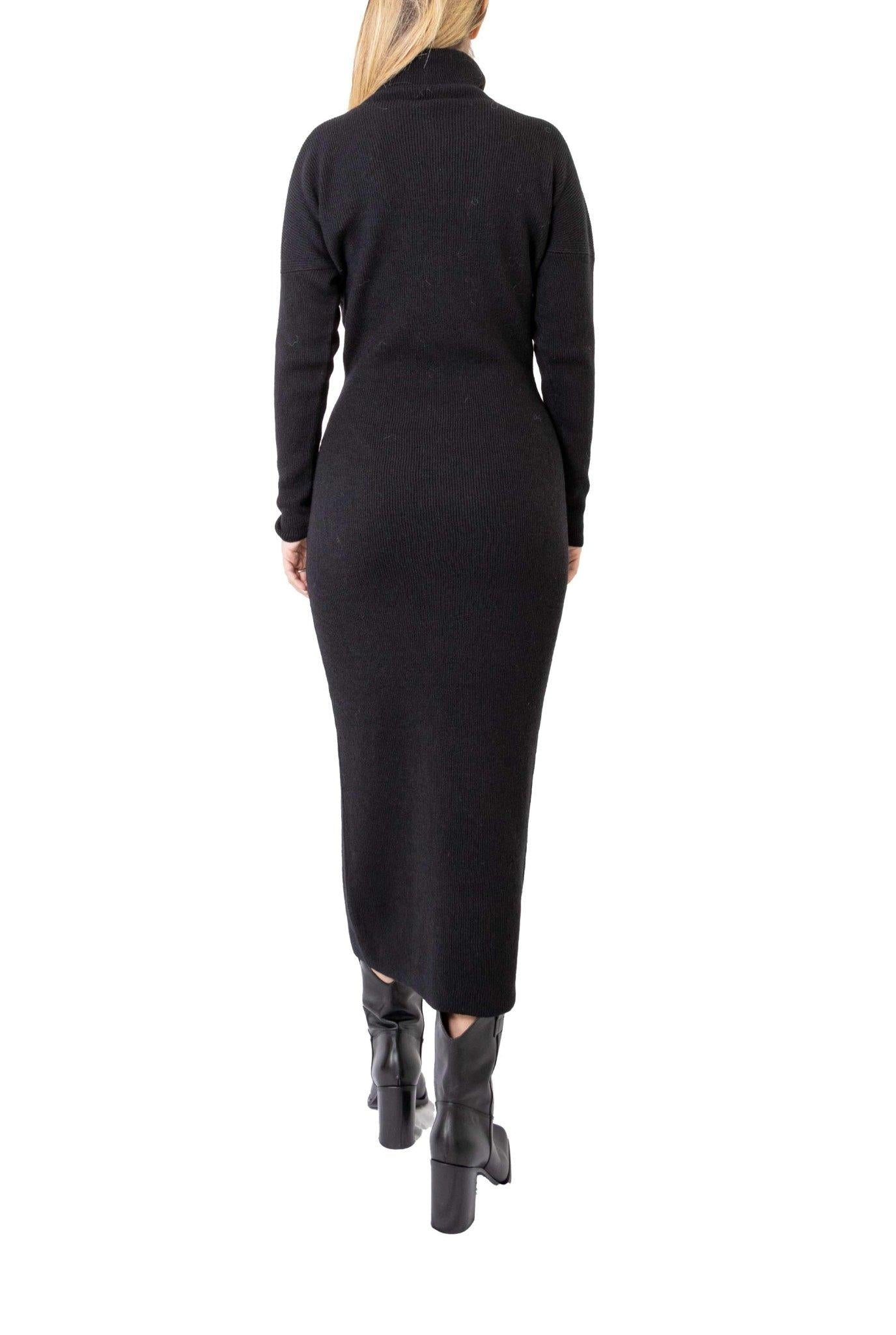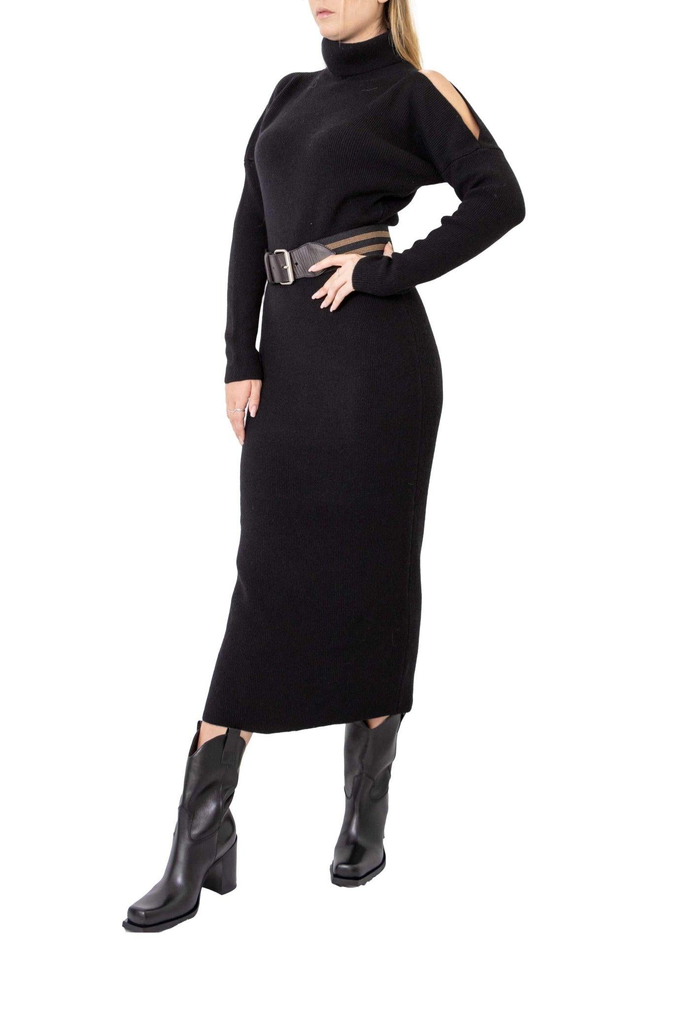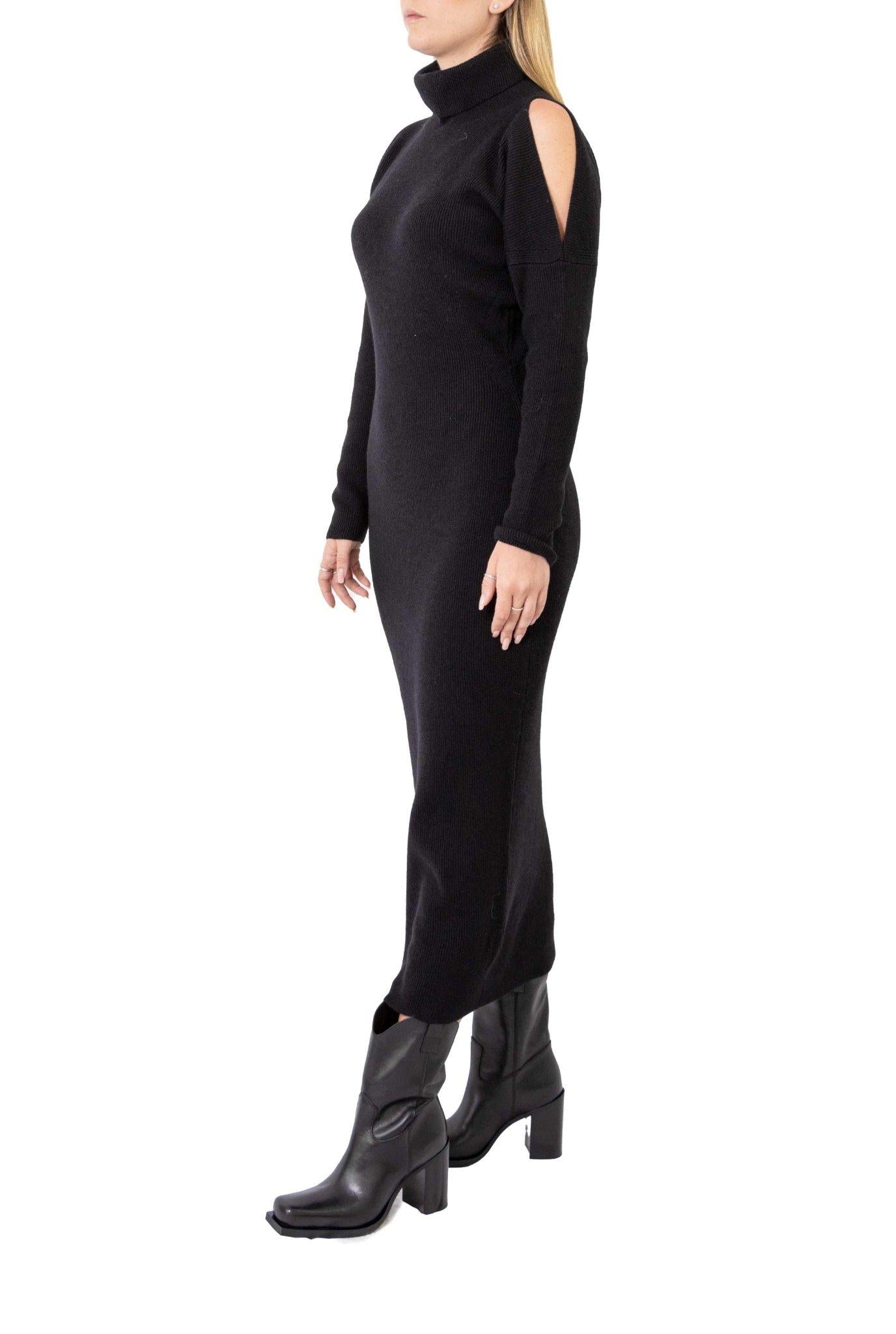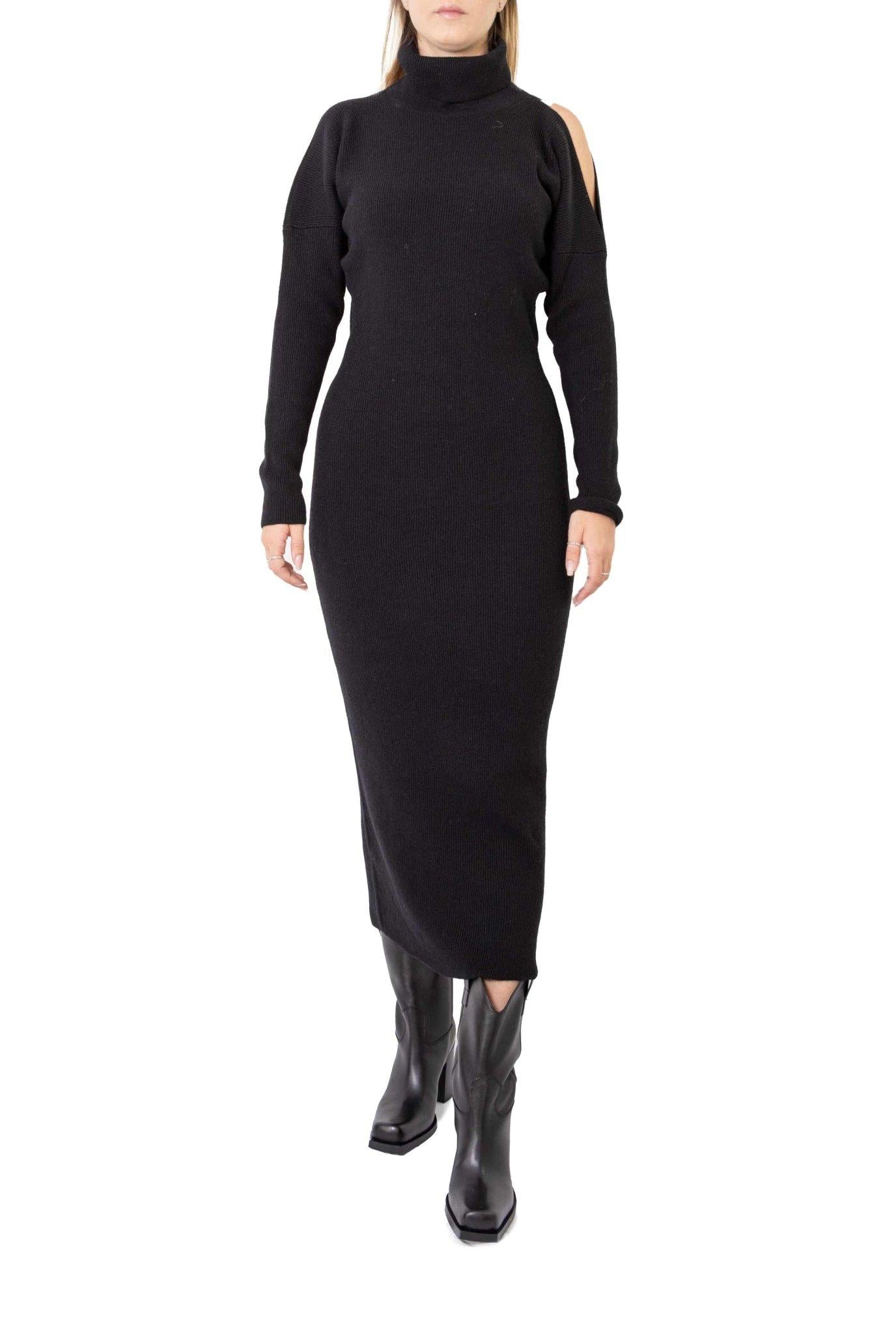 Black knit dress with cut-out shoulders
