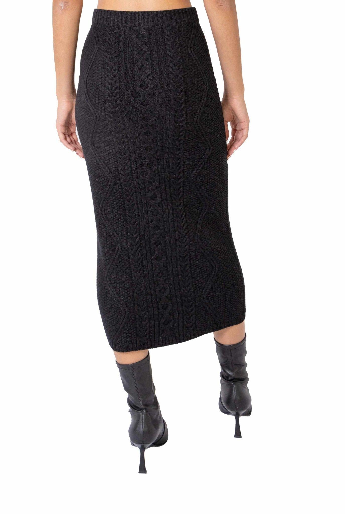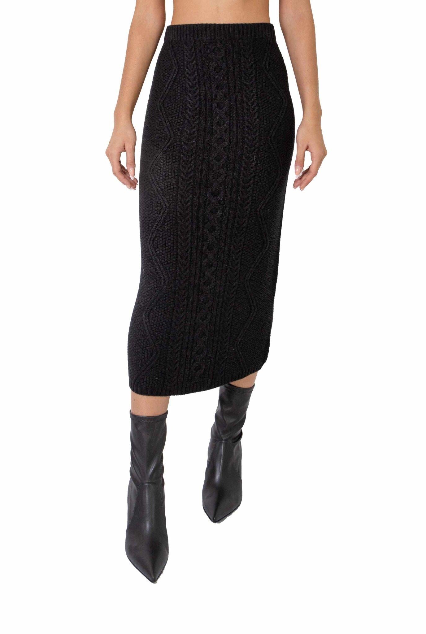 High-waisted design, elastic waist, braided knit, midi length. Tight-fitting design.