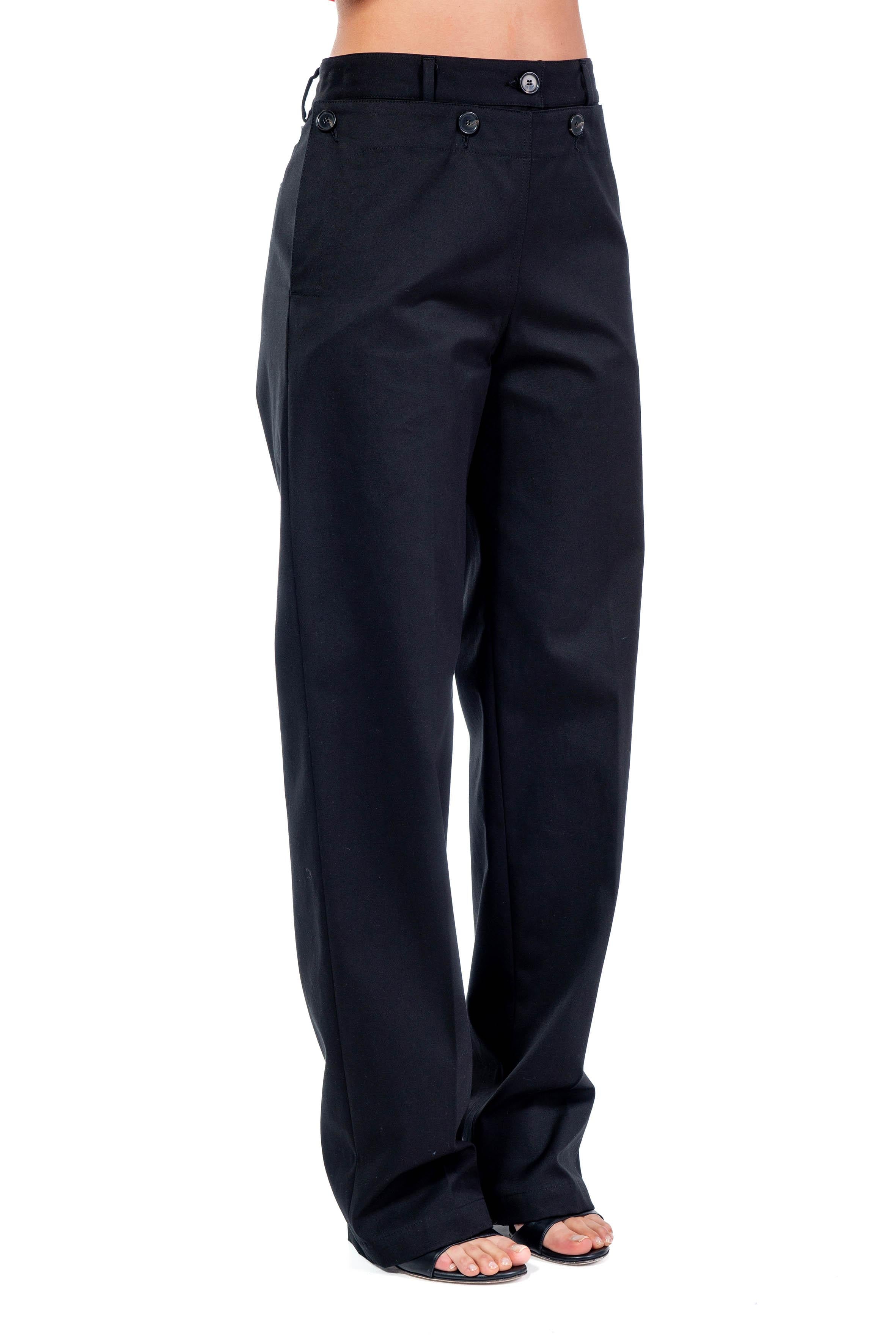 Black cotton palazzo pants from MSGM, Straight leg, double front buttoning, flush pocket with back button, flush side pockets on hips.
