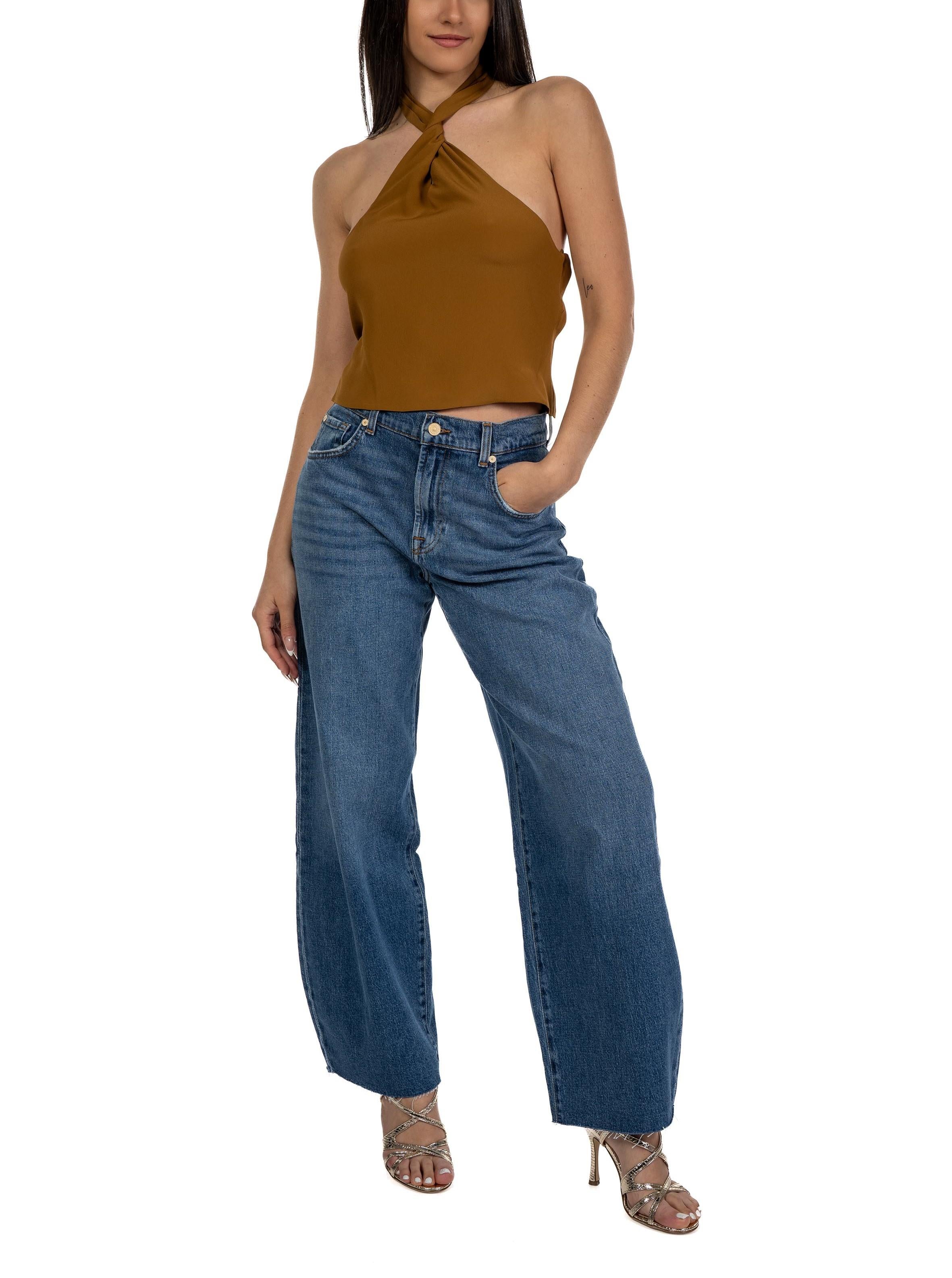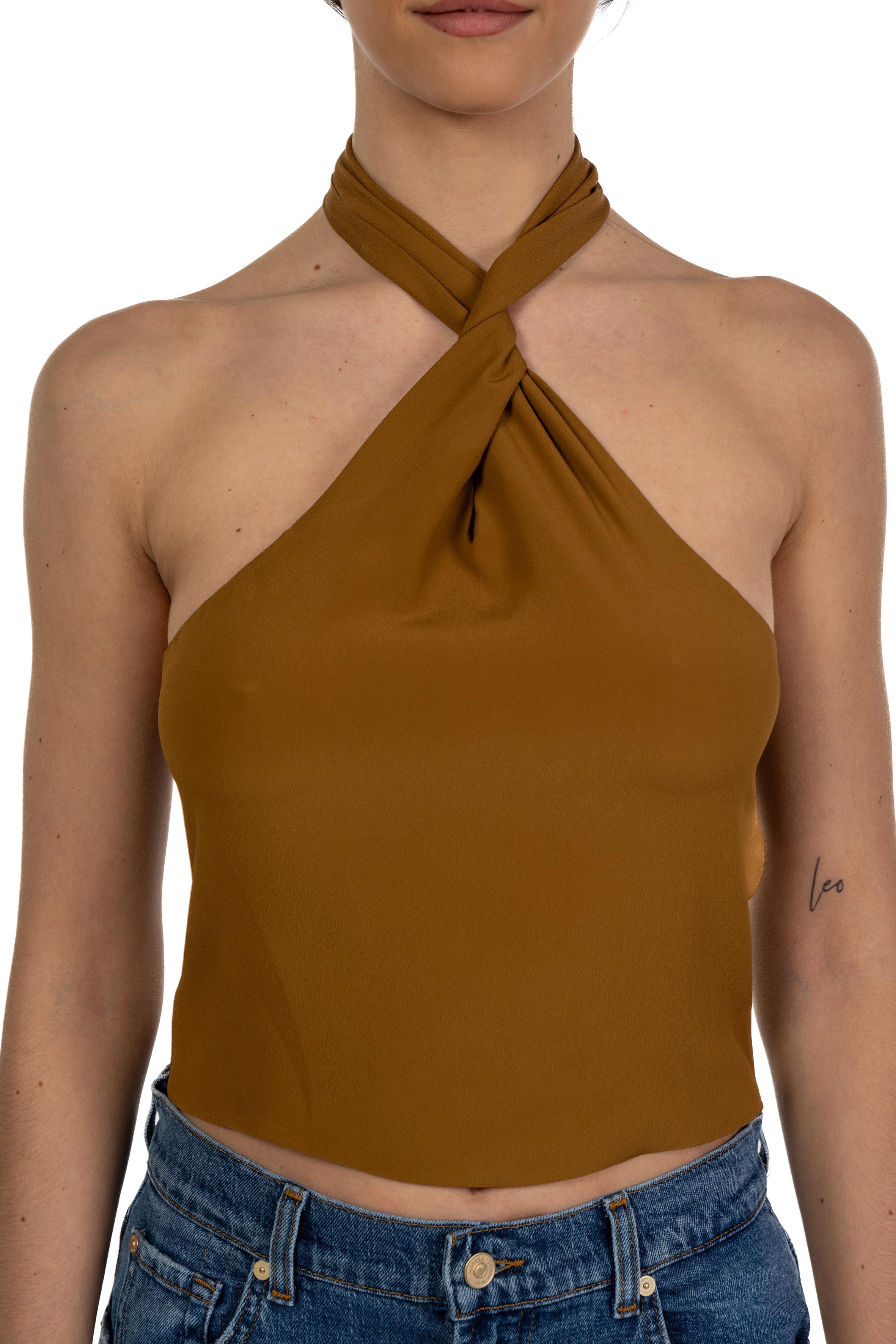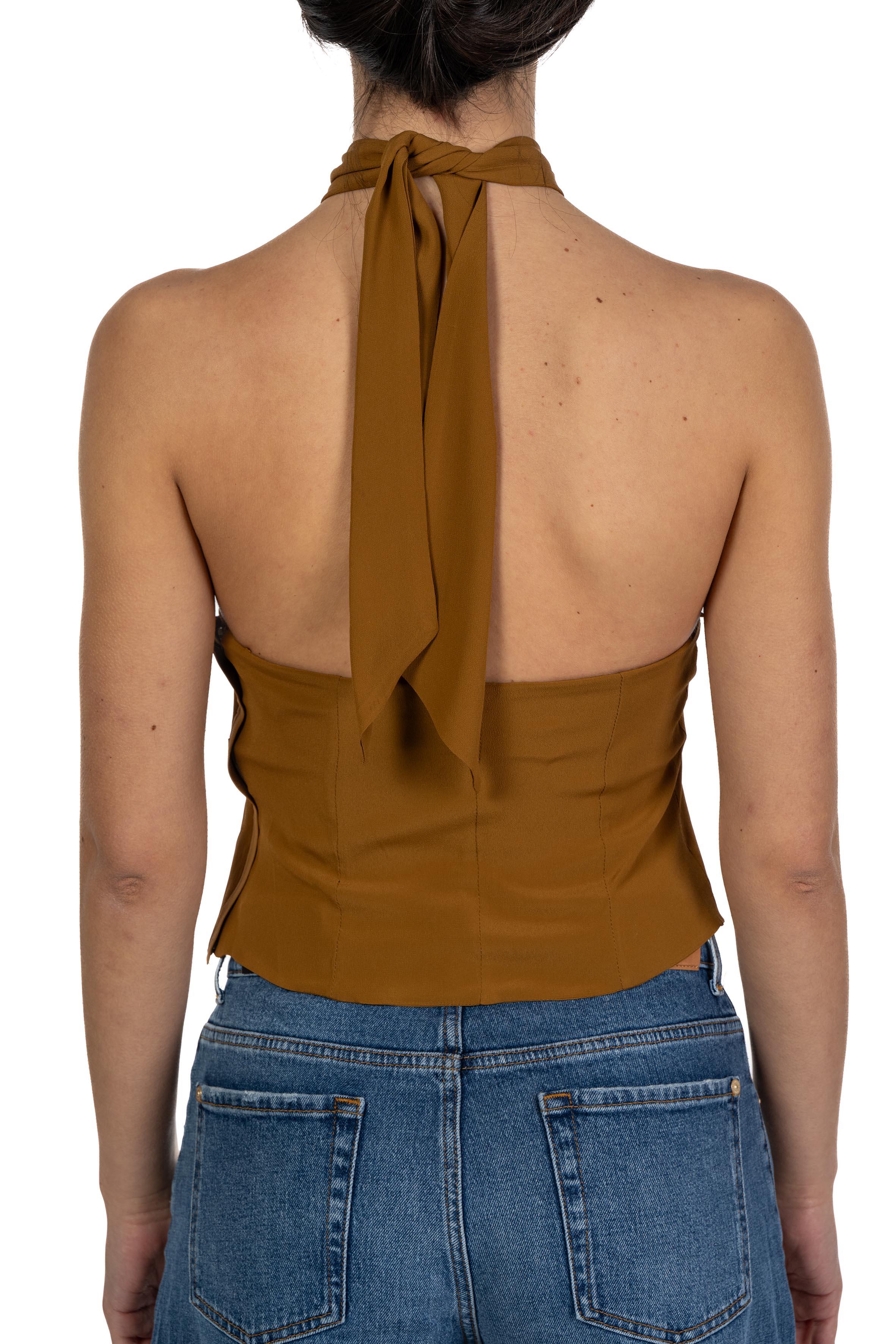 Brown-colored Top by FEDERICA TOSI, knotted behind the head, V-neck, cpn side zipper closure.