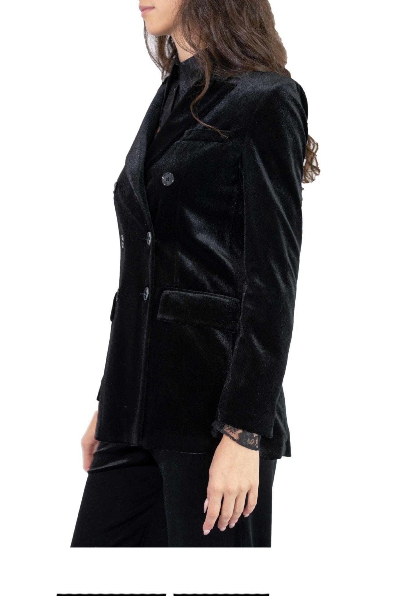 Slightly fitted, double-breasted design with front closure, side flap pockets, lapels, back vent, button cuffs. Slim fit.