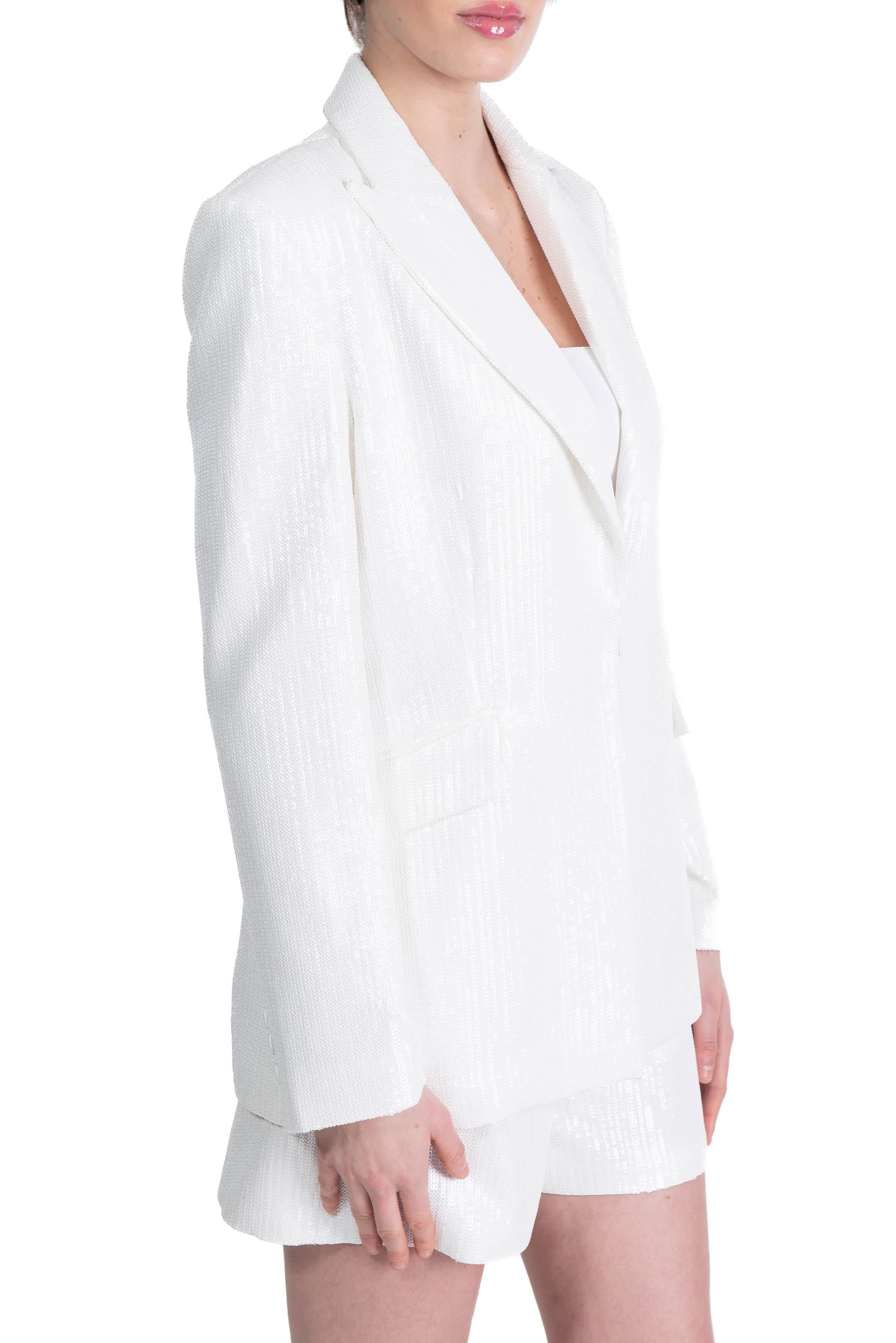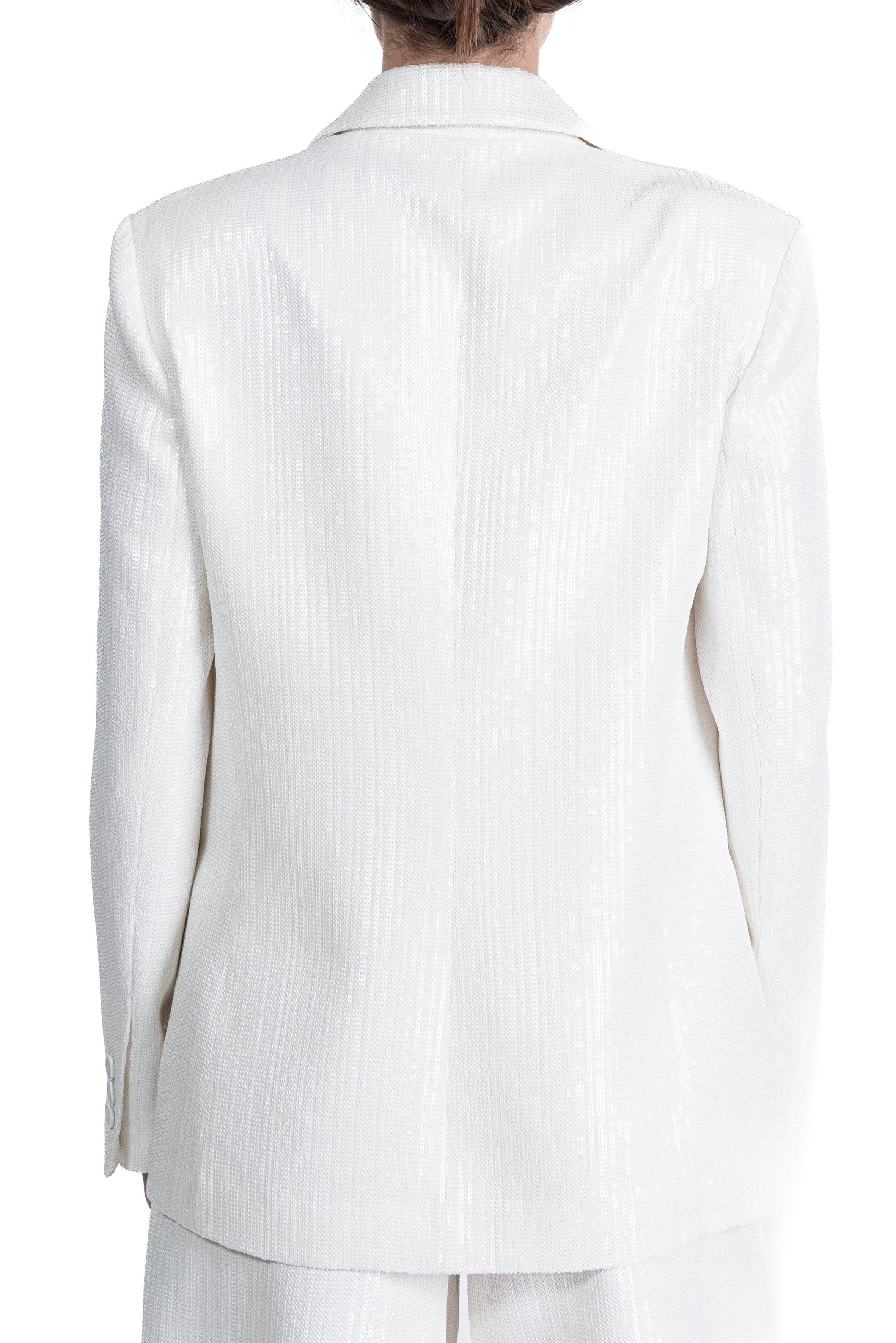 Single-breasted jacket with appliqués at the over of FEDERICA TOSI, white color, classic lapels, 2 front flap pockets, 1 hidden button closure.