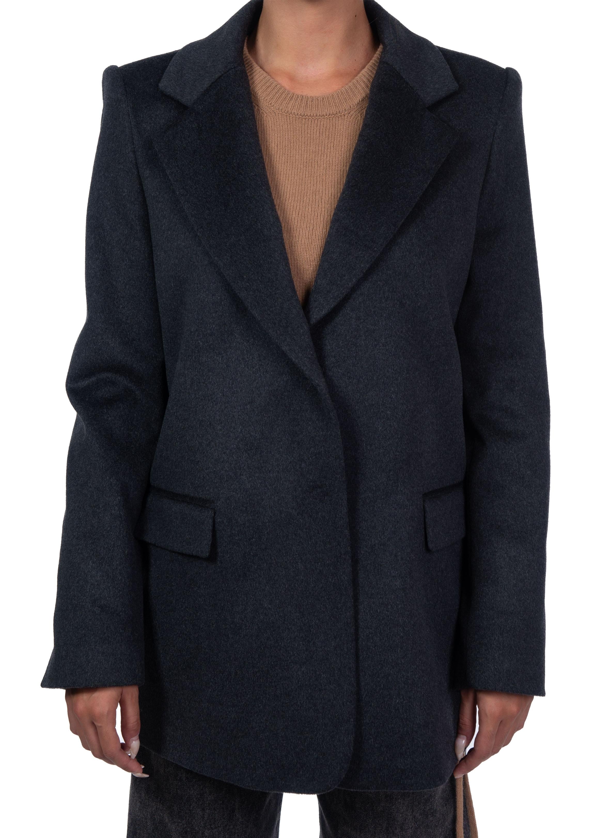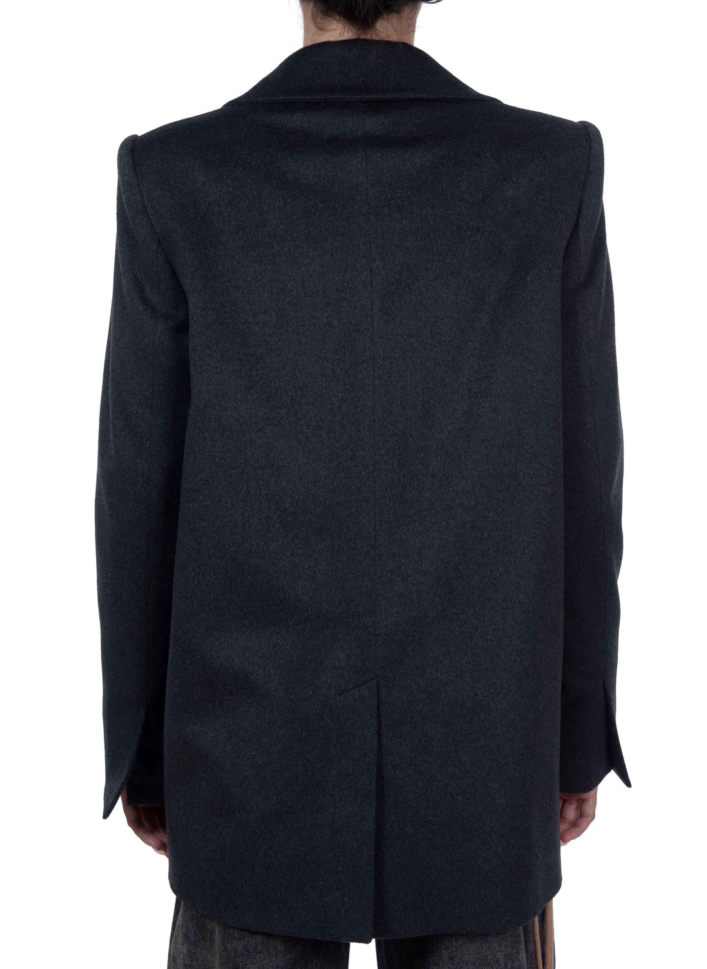 Gray wool over jacket from Federica Tosi featuring a single-breasted design, a concealed snap button closure, classic lapels, flap pockets, a center back vent, and a full lining.