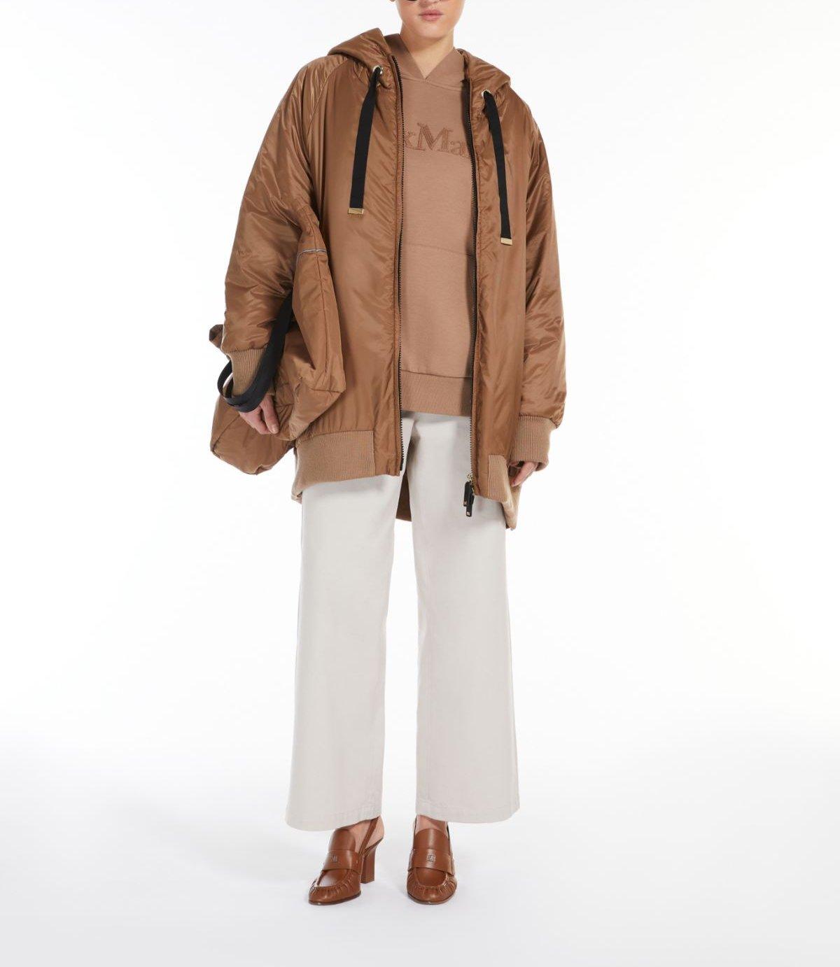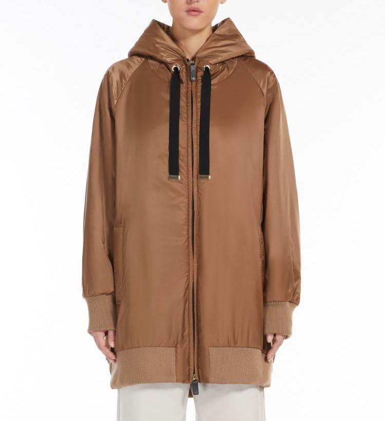 fodera 100% poliestere; con imbottitura in 48% poliestere, 48% cammello, 4% seta; con particolari in maglia 85% lana vergine, 14% poliammide, 1% elastan