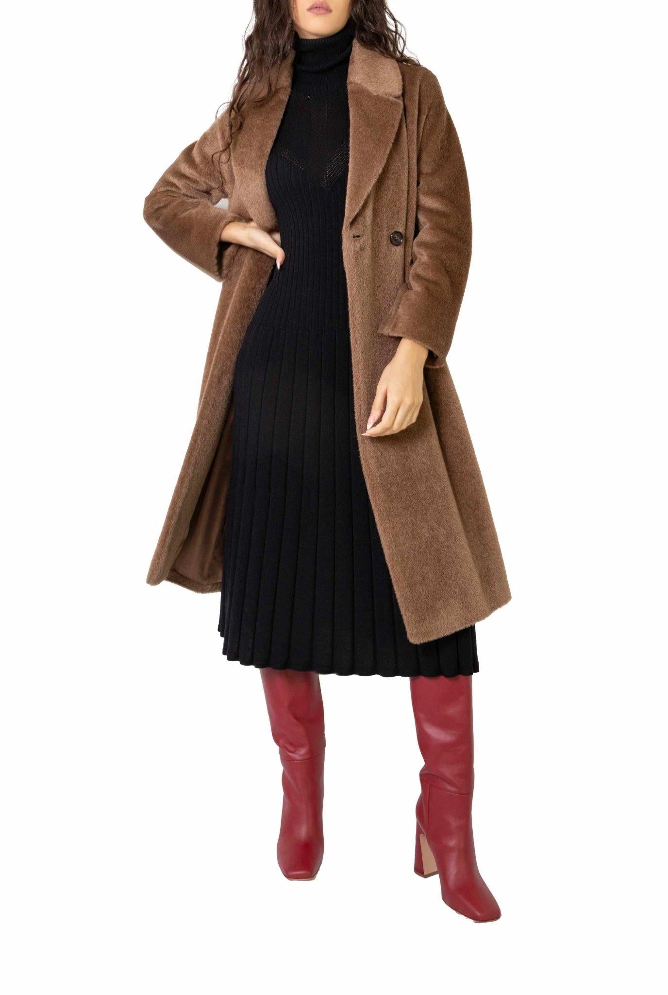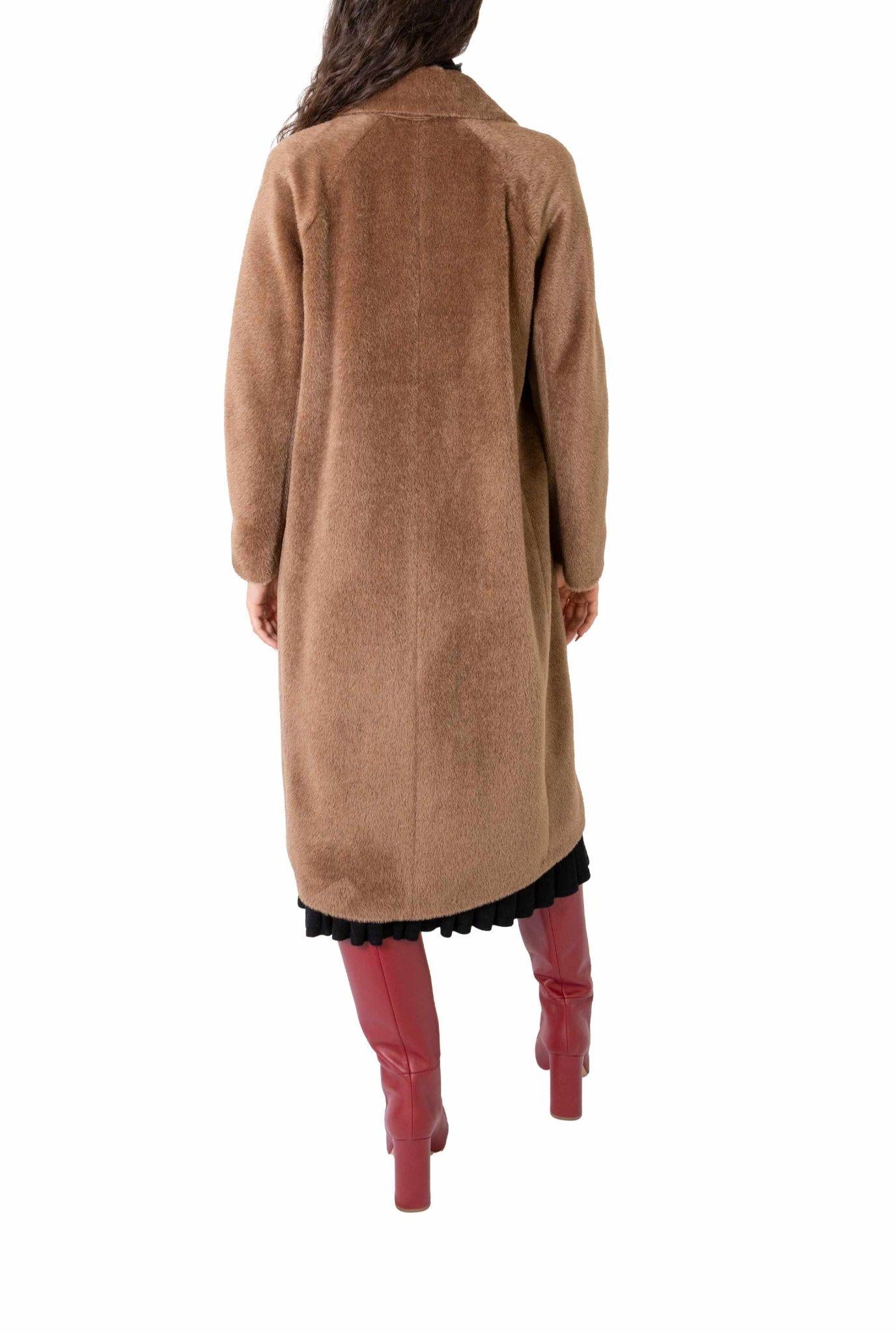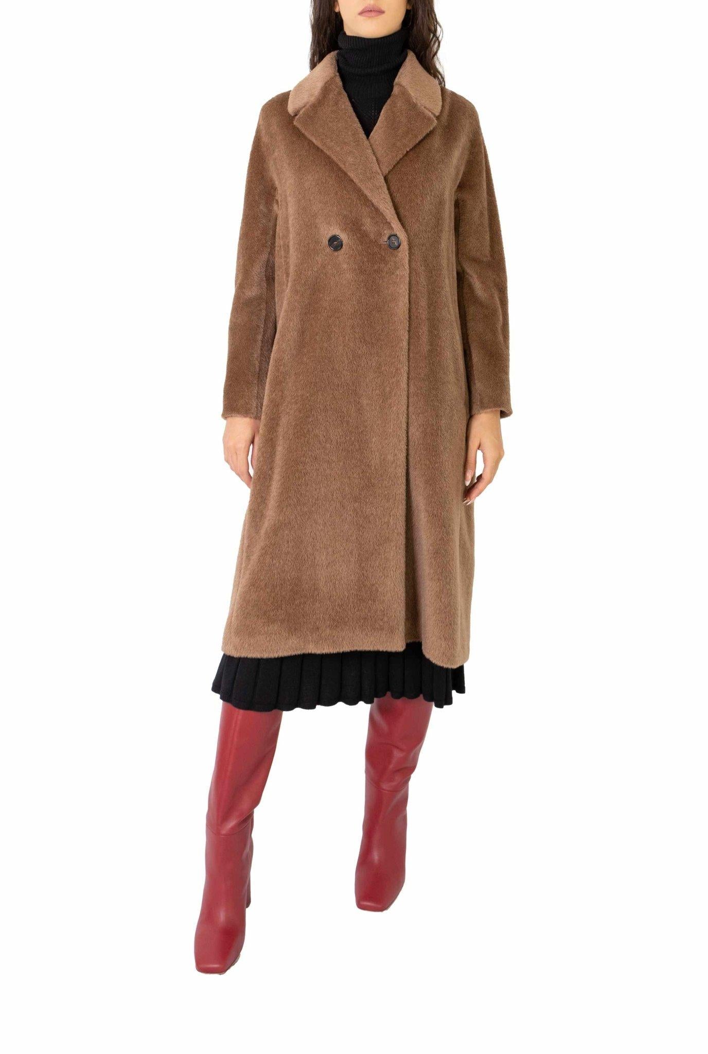 Cappotto doppiopetto Zaire realizzato in pregiato e soffice orsetto di alpaca e lana di colore cammello di S Max Mara.