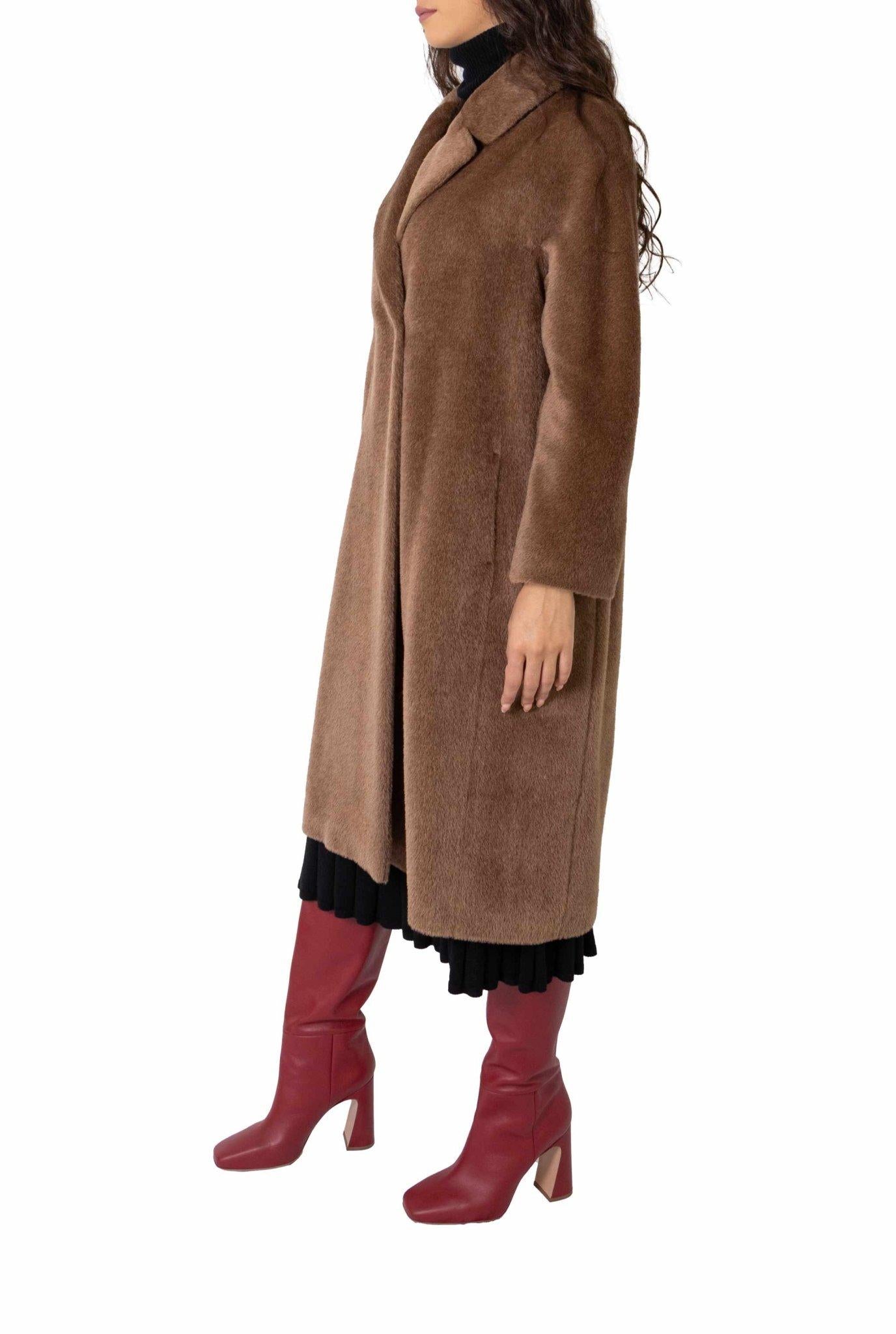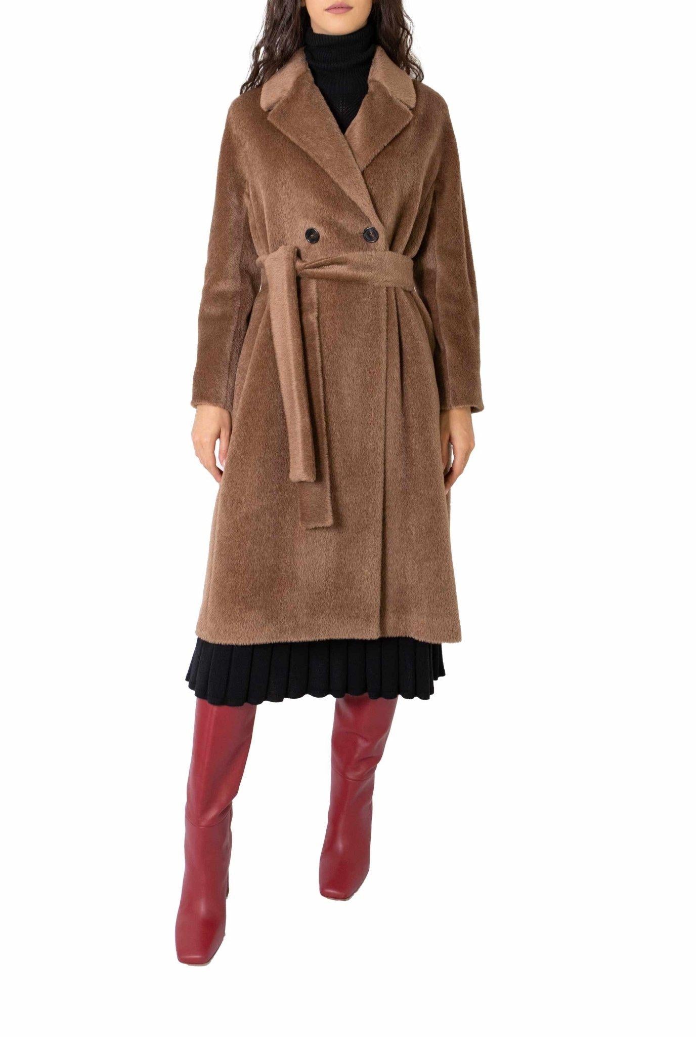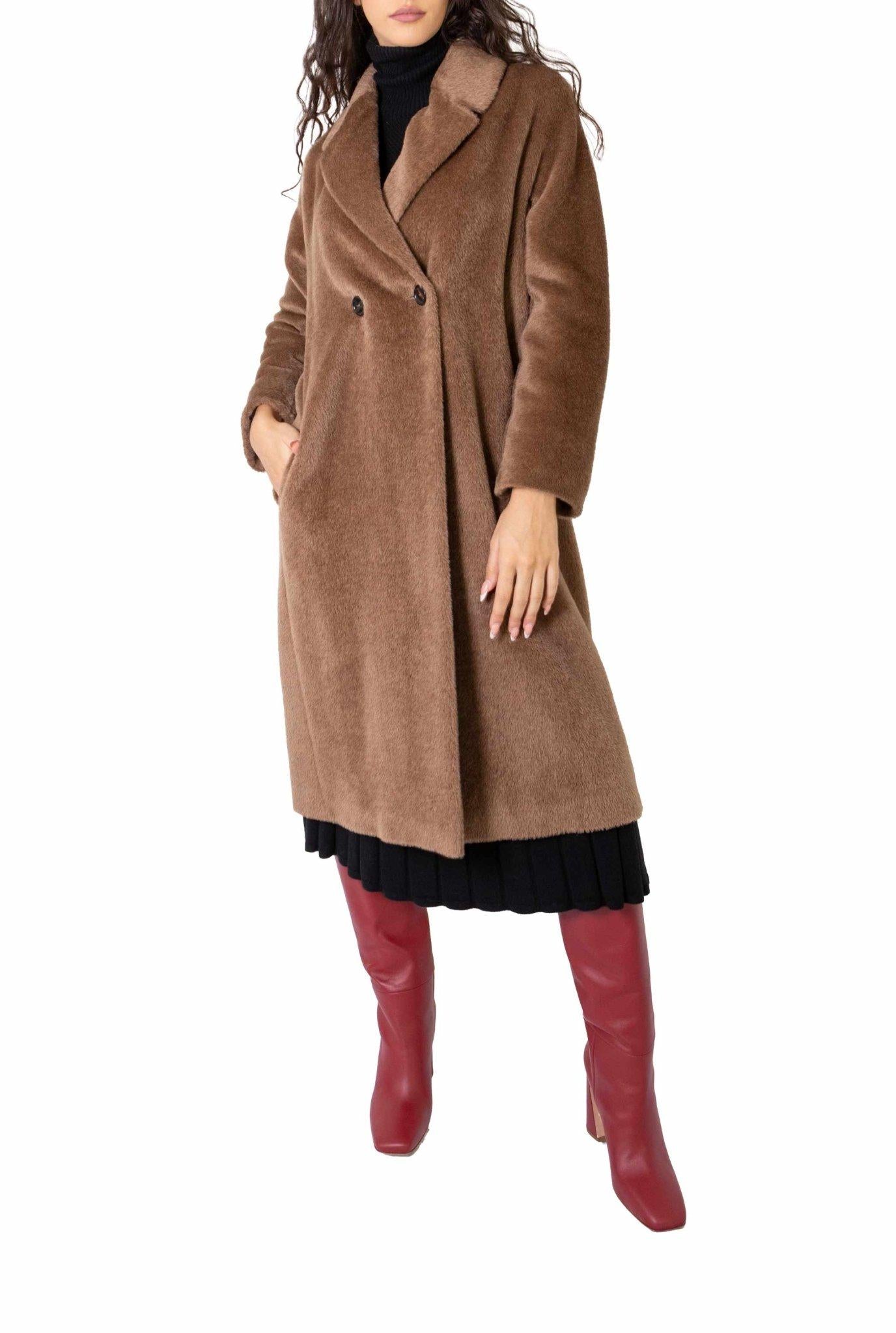 Cappotto doppiopetto Zaire realizzato in pregiato e soffice orsetto di alpaca e lana di colore cammello di S Max Mara.