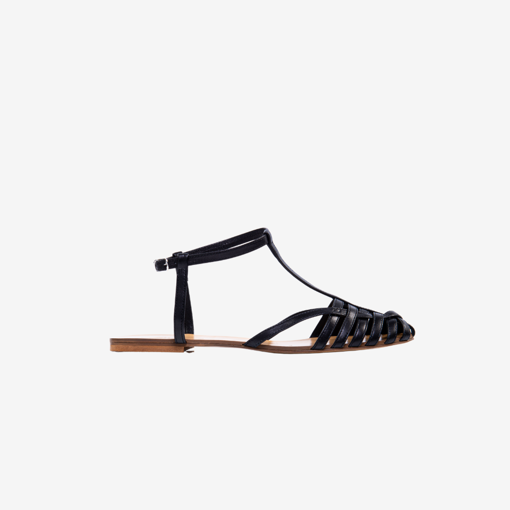 Sandalo flat in pelle nera.