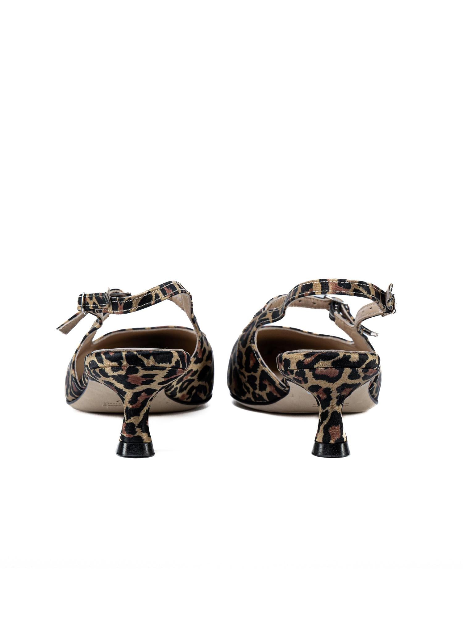 Slingback a punta di ANNA F. realizzata in pelle, chiusura con cinturino sul tallone e cinturino sul collo del piede regolabile, realizzata in tessuto stampa animalier.
