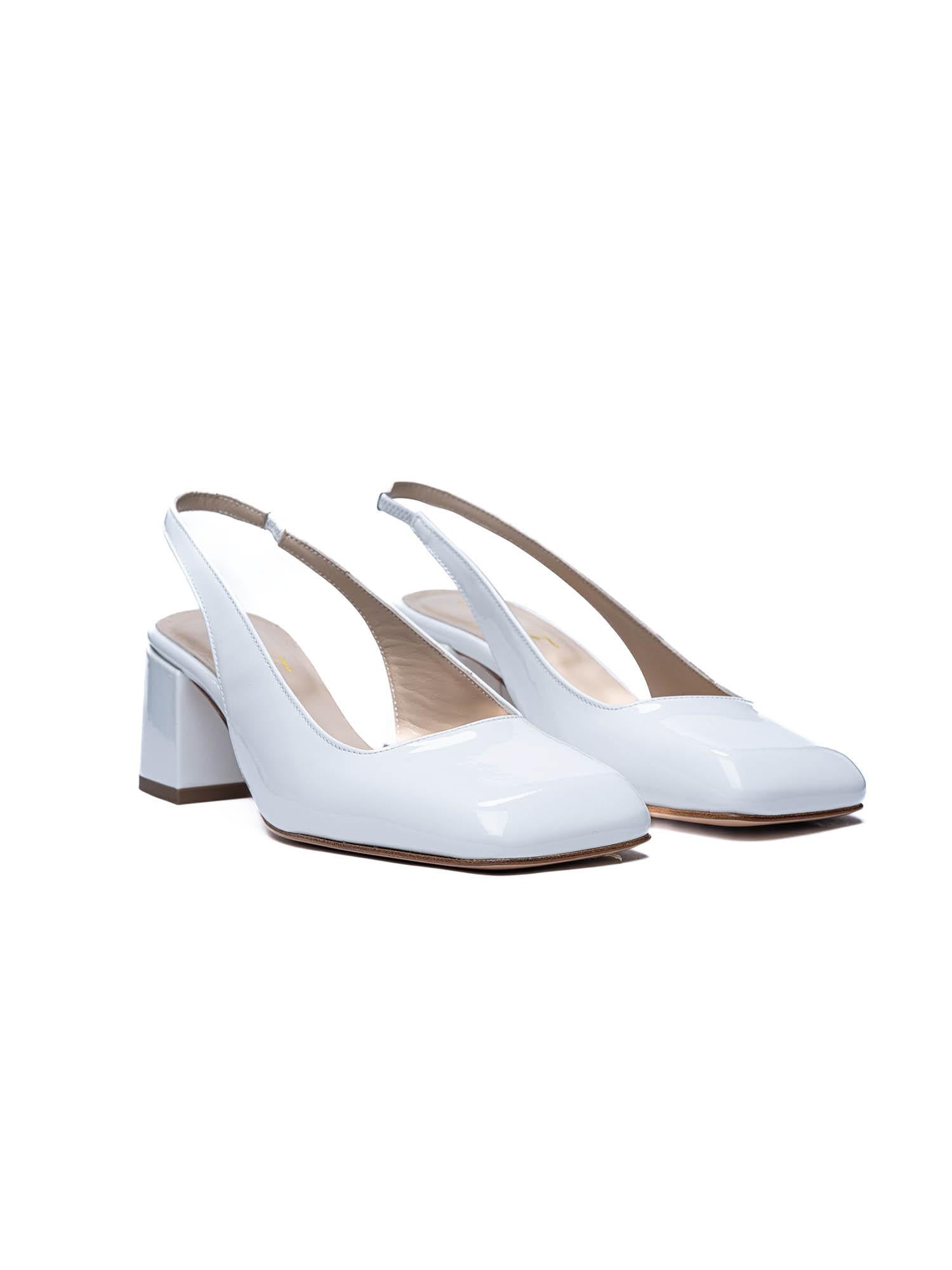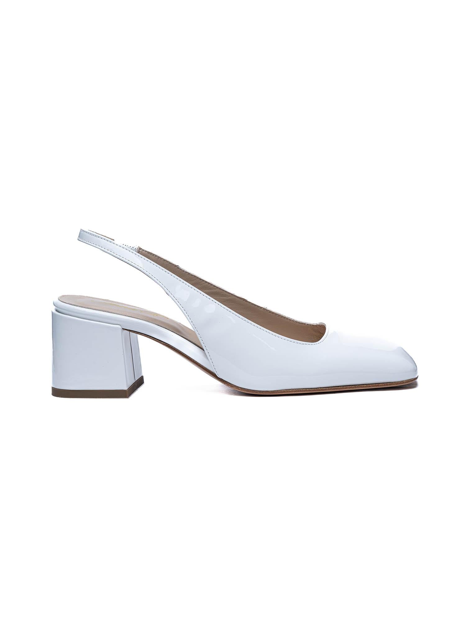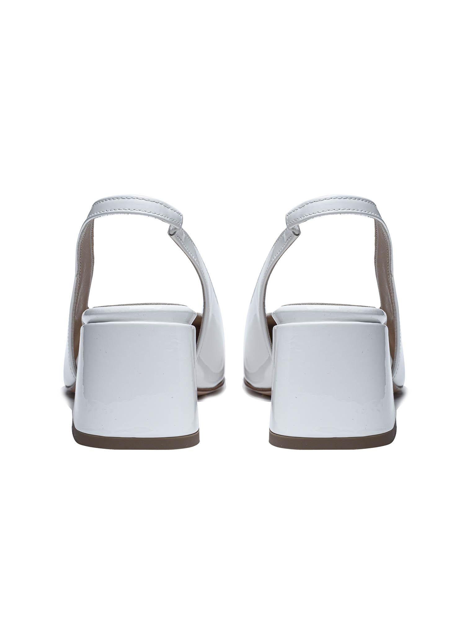 Chanel punta quadra di ANNA F, in pelle di vernice bianca, tacco quadrato, soletta in pelle e suola in cuoio.