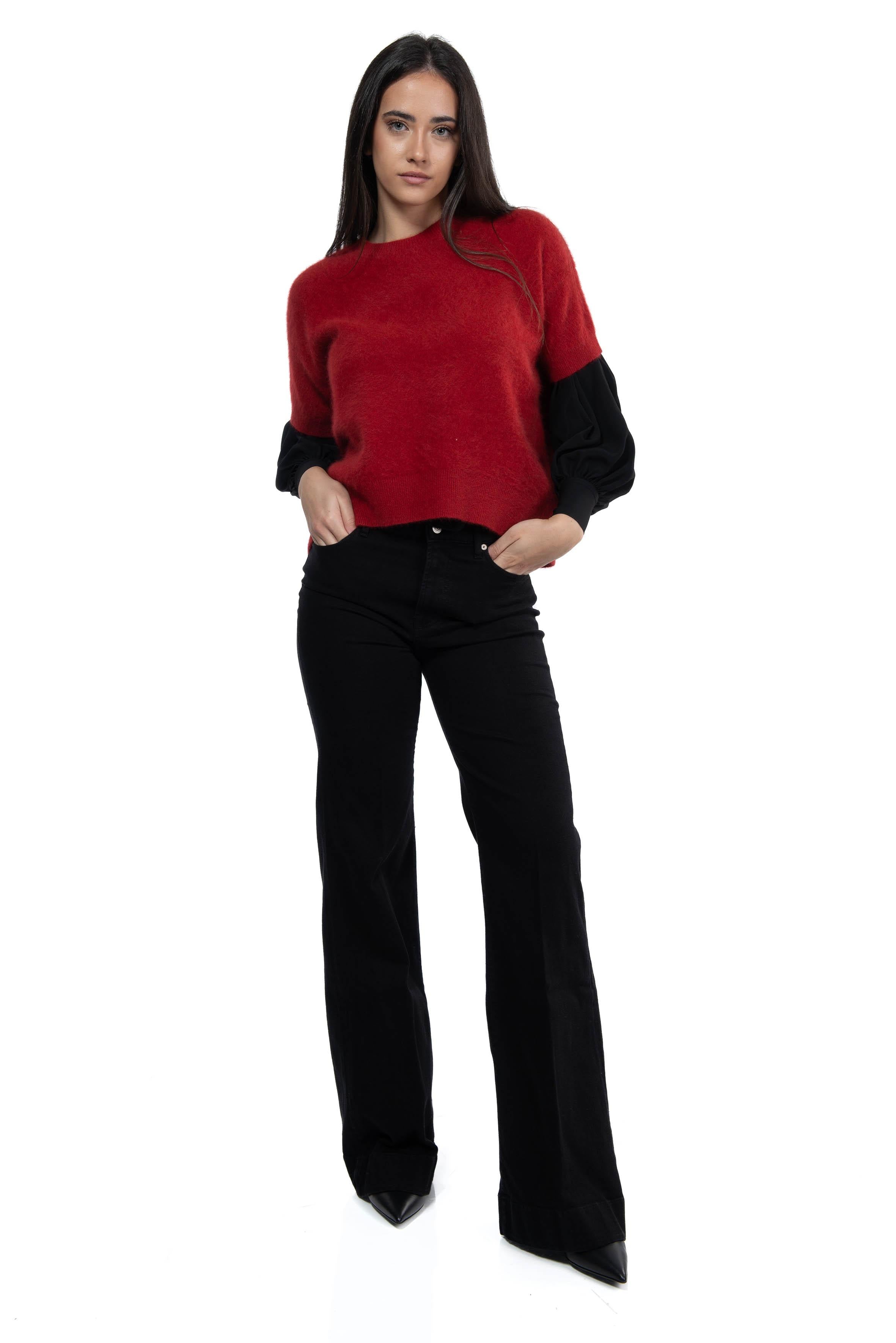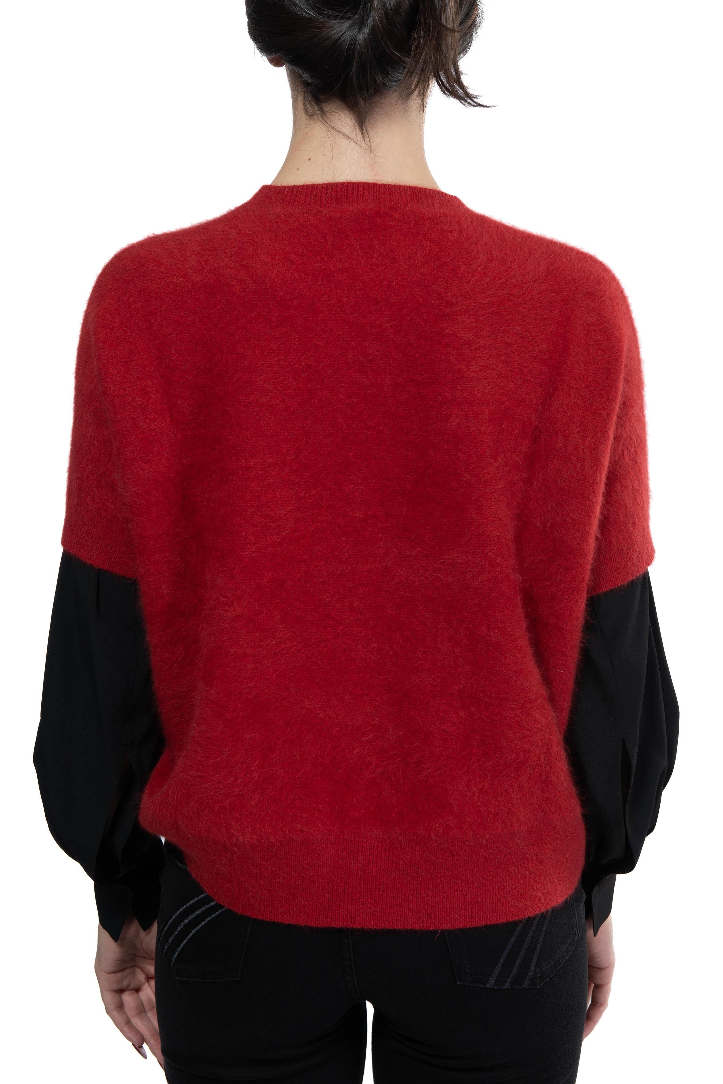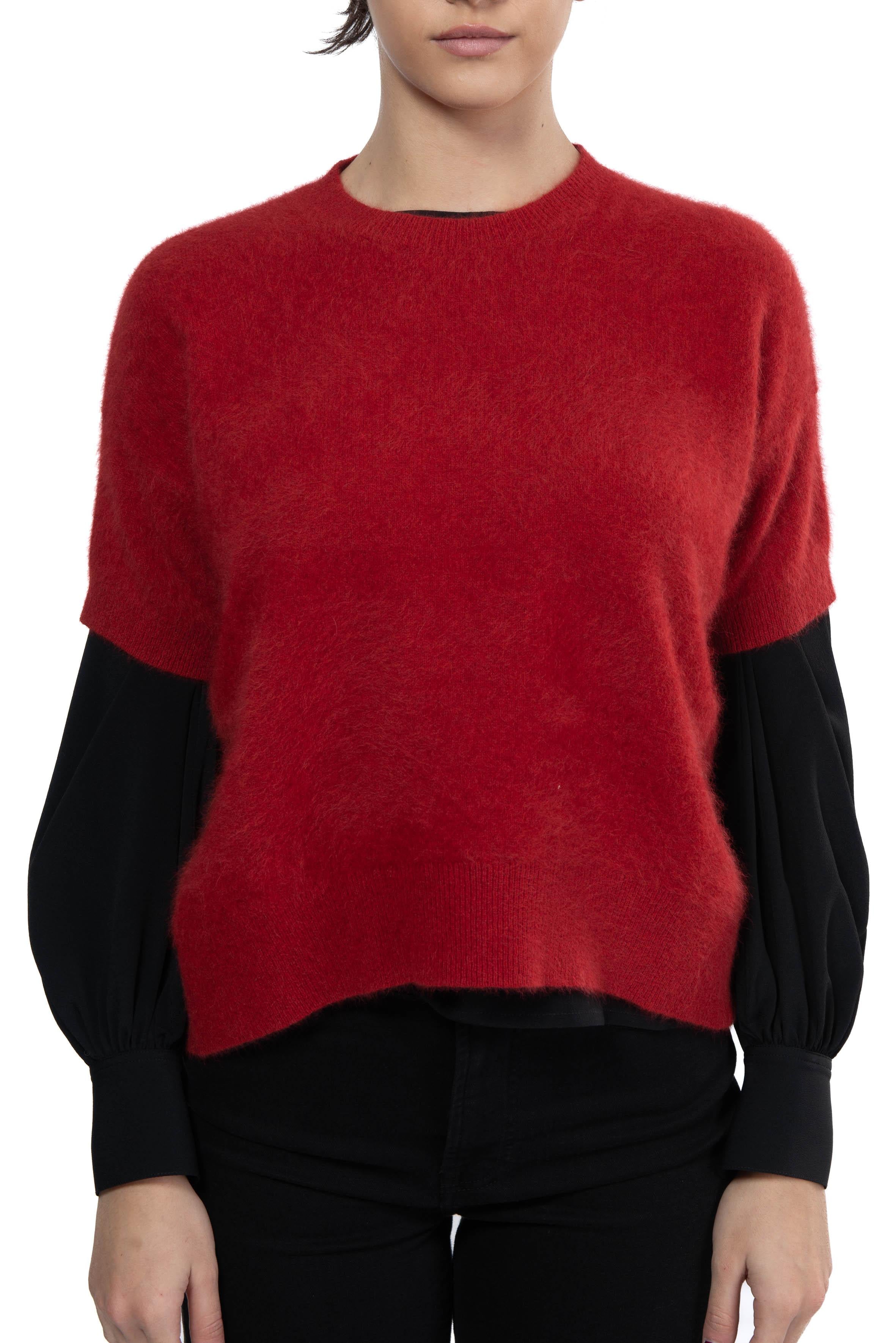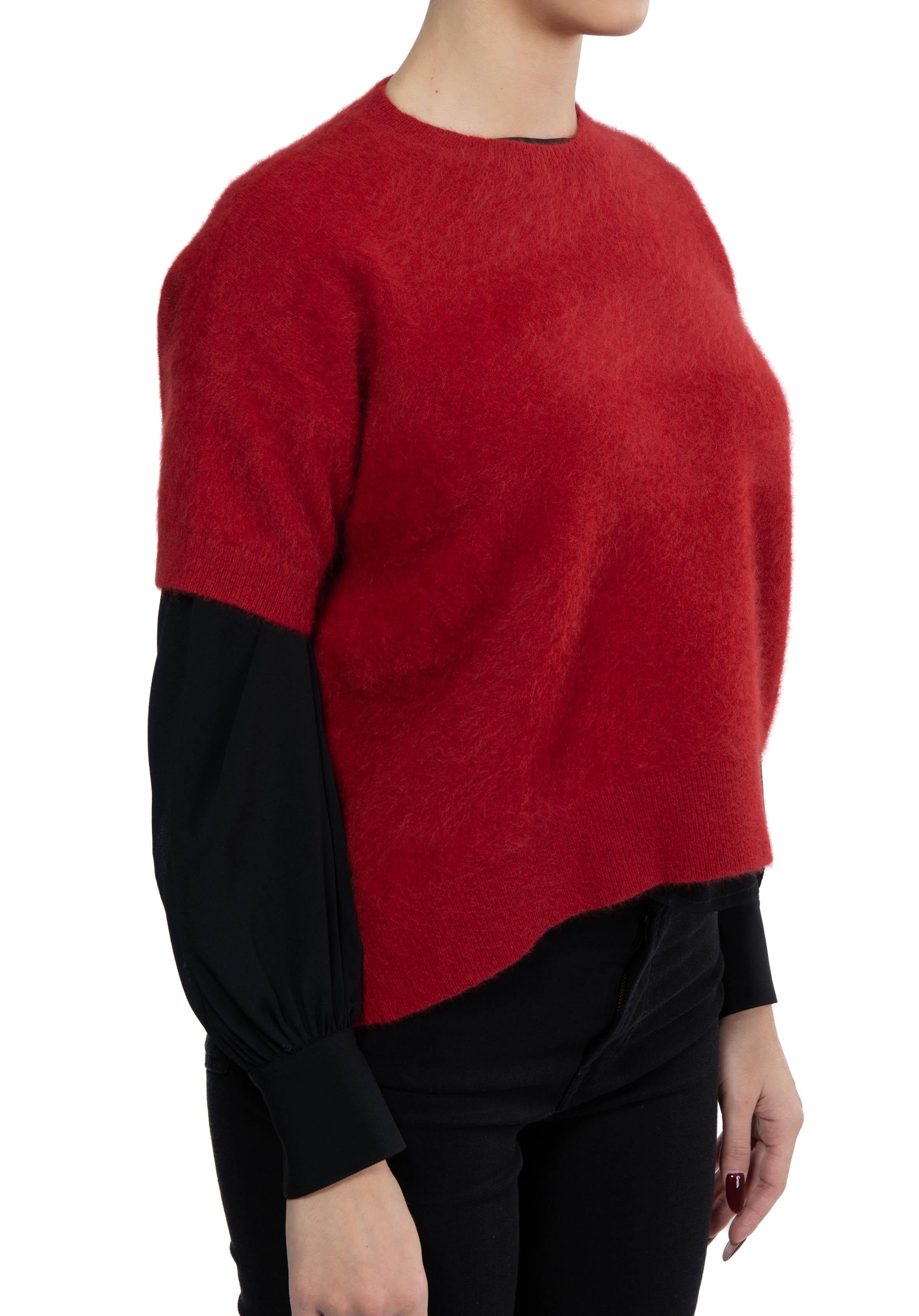 Maglia girocollo rossa di Jucca, mezza manica, modello a scatola.