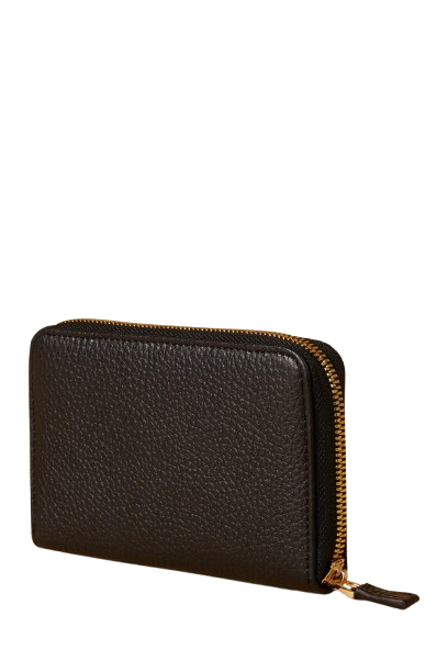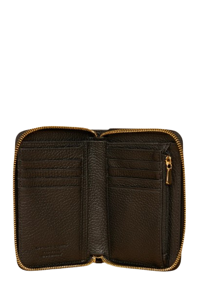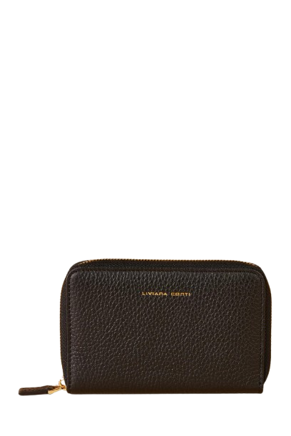 Mini portafogli zip around in vera pelle, di Liviana Conti logo laminato impresso a caldo.