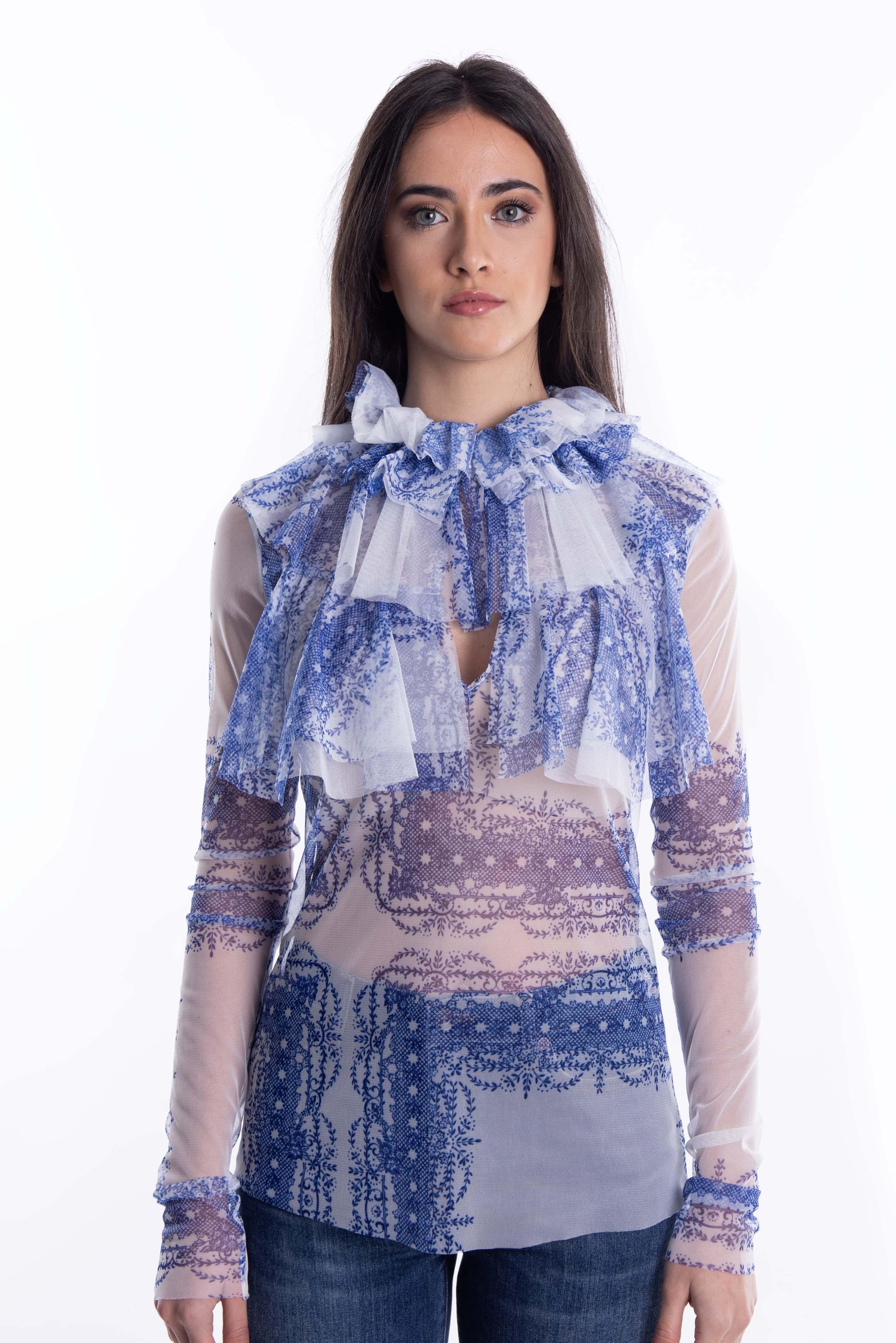 Blusa in tulle con stampa