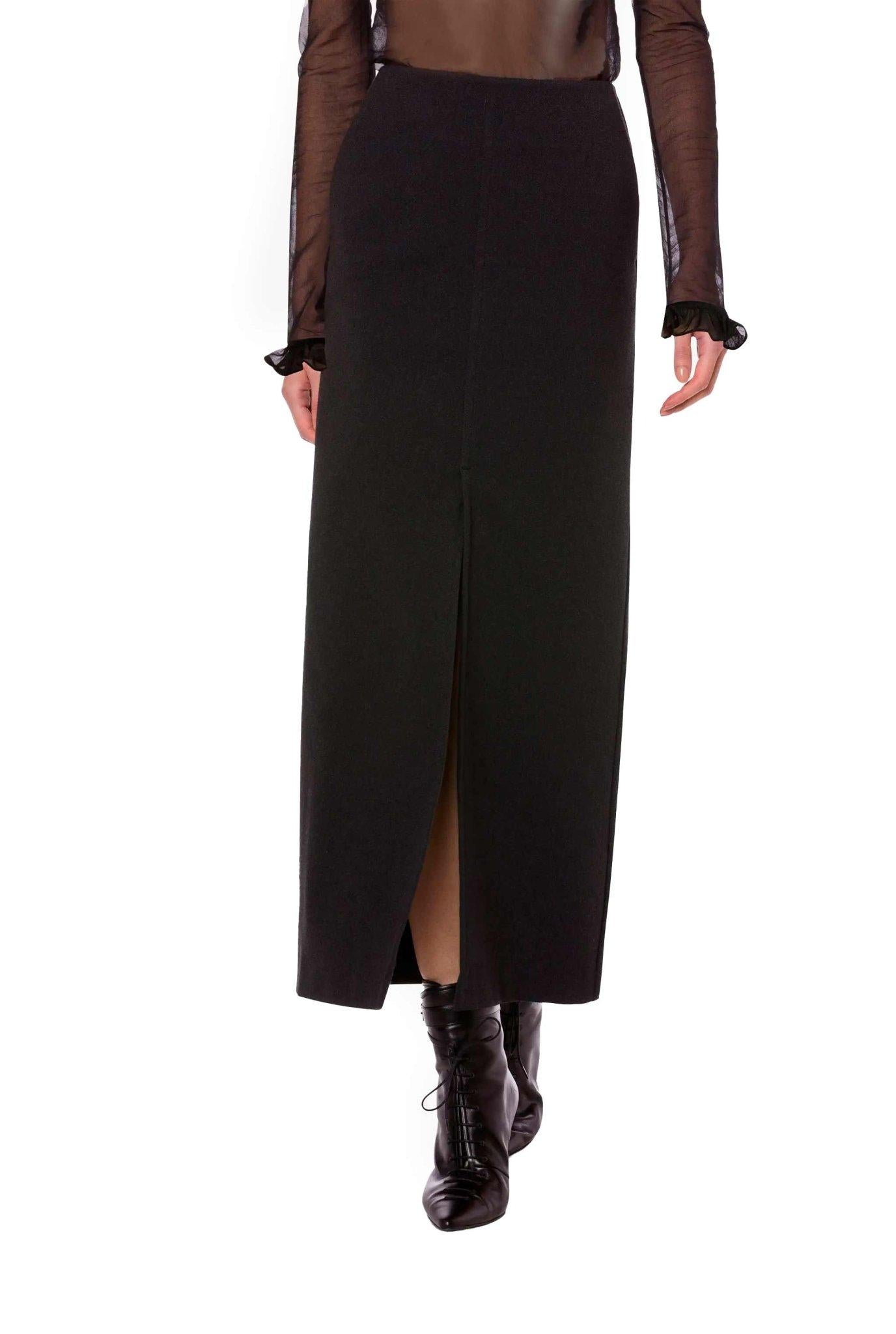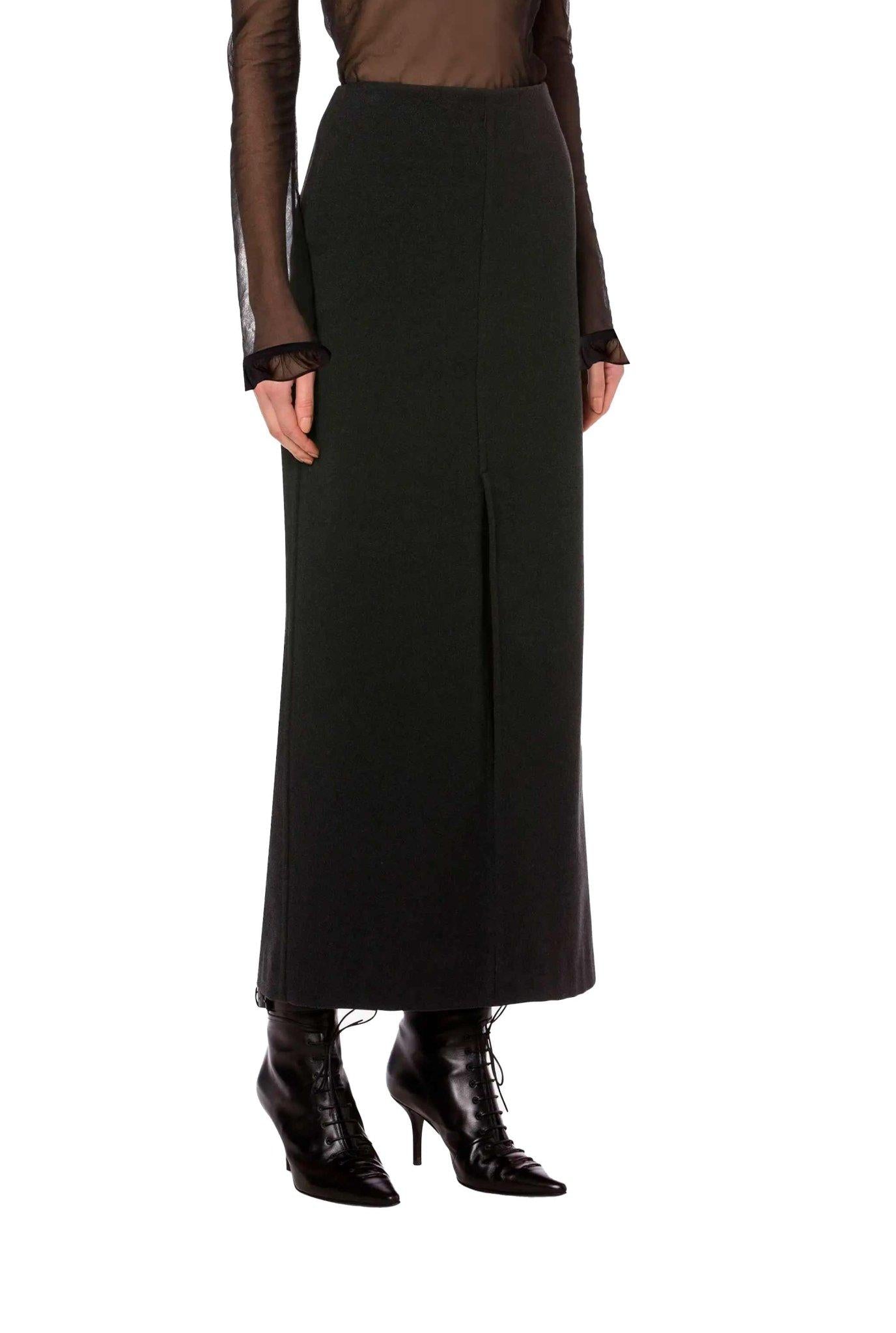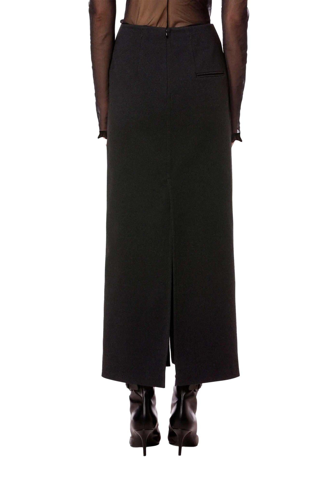 Modello a vita medio alta, due tasche laterali, tasca a filetto sul retro, chiusura posteriore con zip.