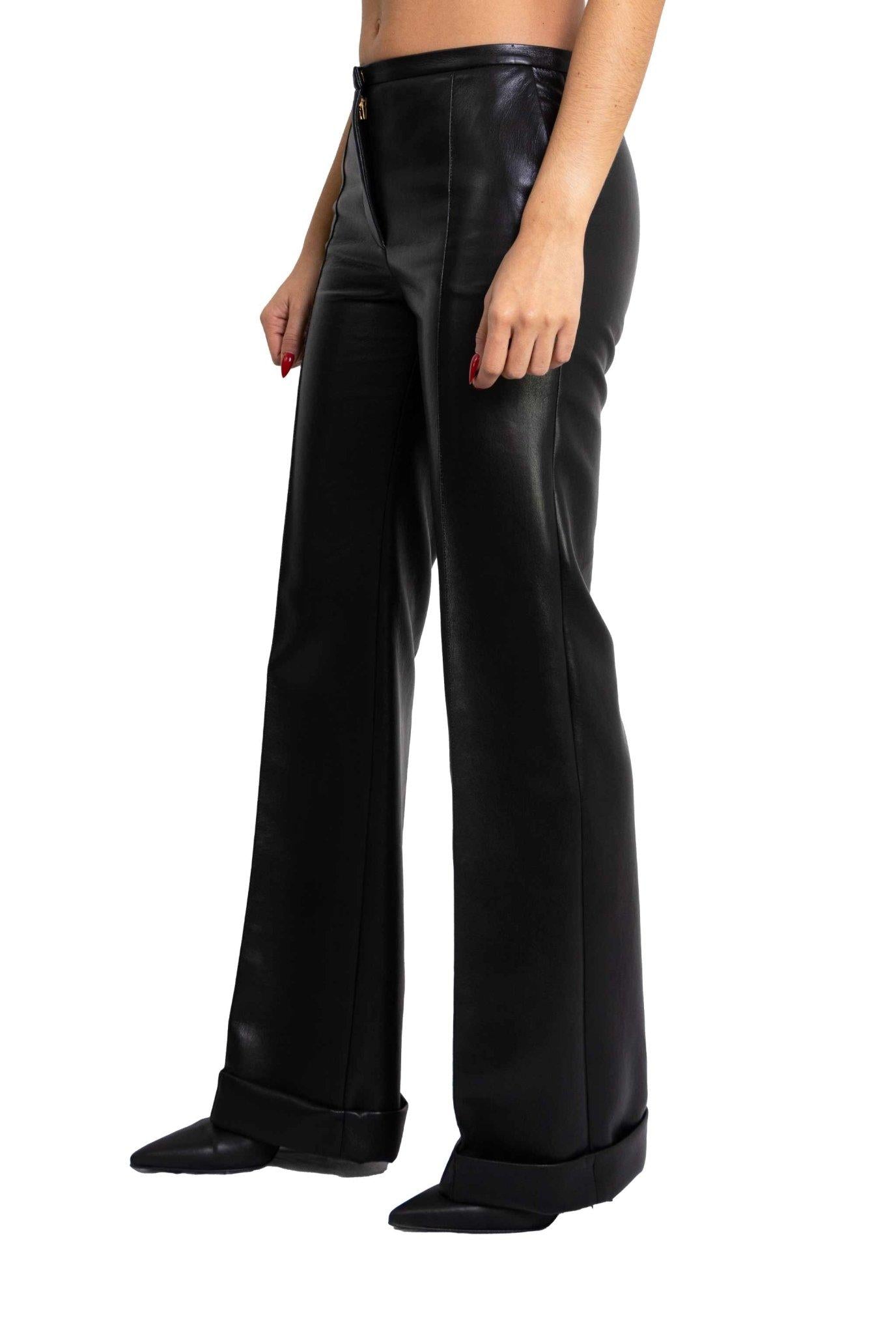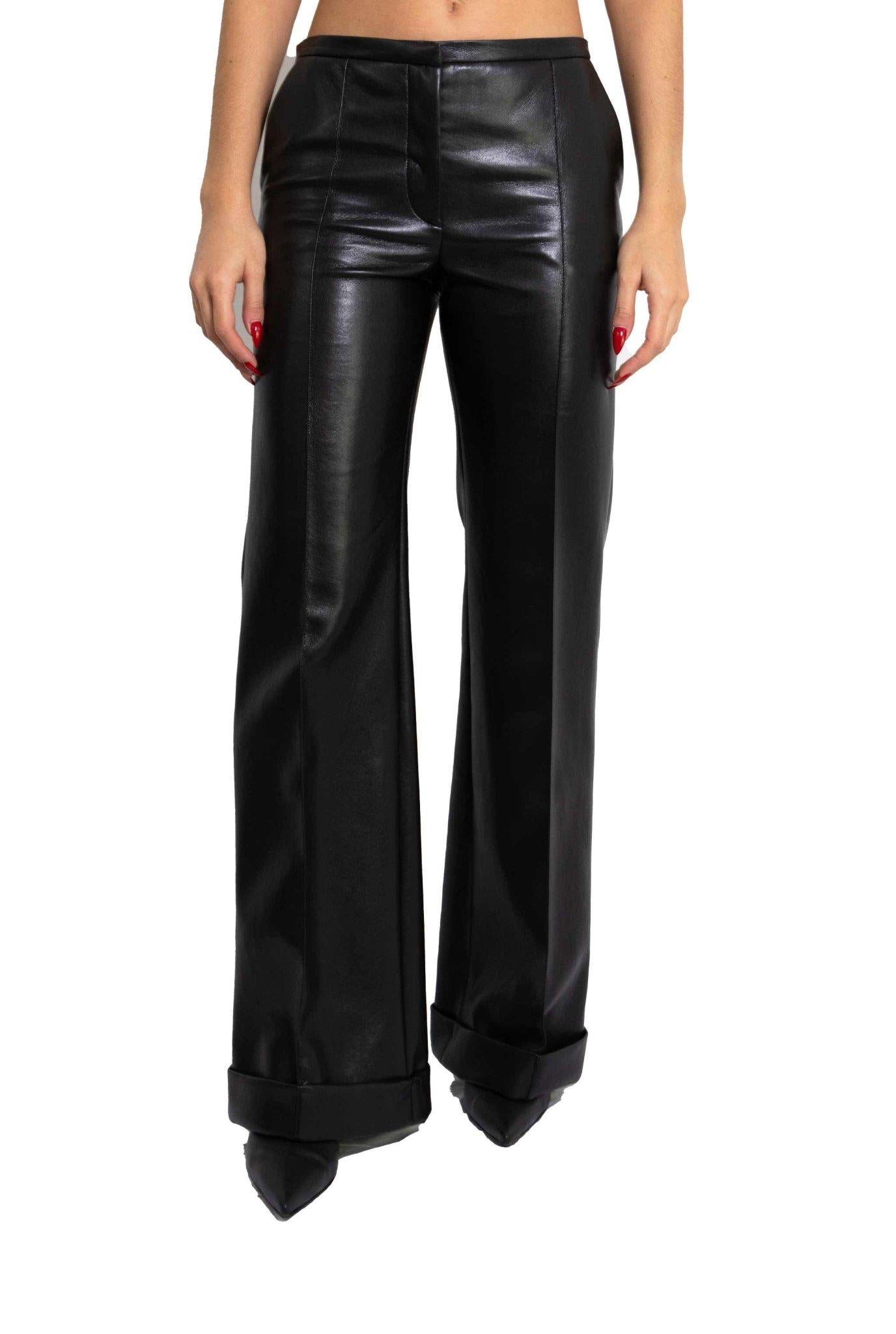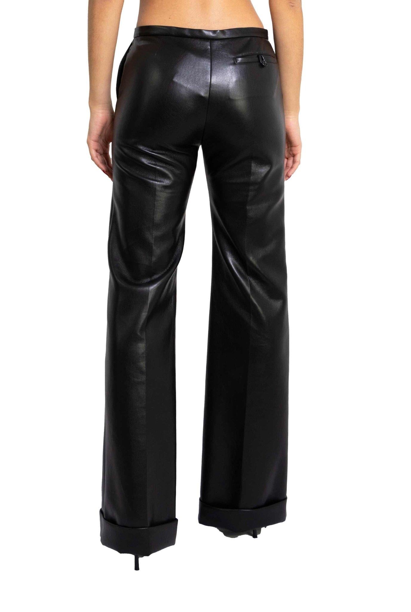 Pantalone a vita bassa in ecopelle di colore nero con fondo con risvolto di Philosophy di Lorenzo Serafini.