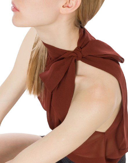 Top in georgette bordo' di Philosophy di Lorenzo Serafini,collo alto con chiusura a fiocco, senza maniche sfoderato.