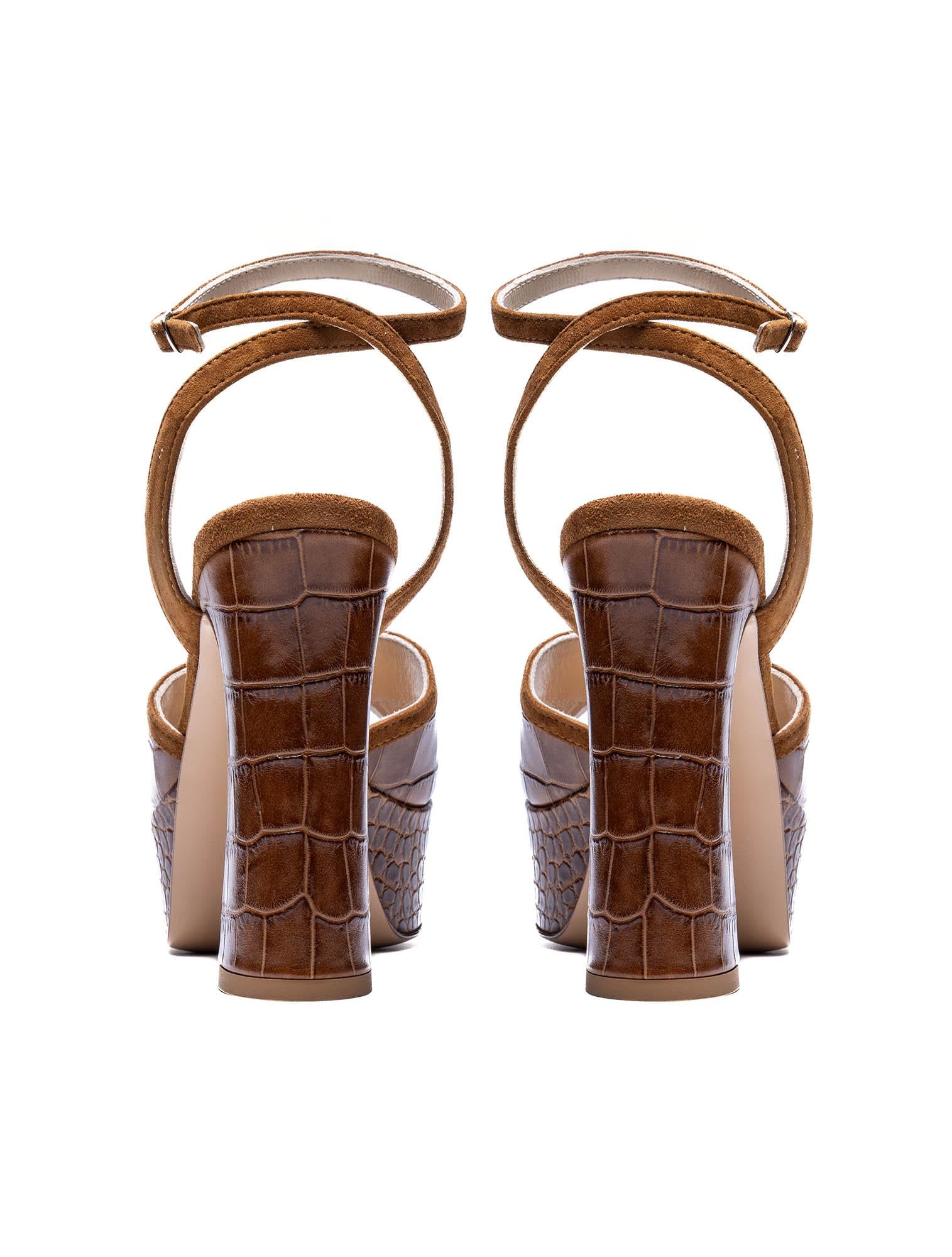 Sandalo ANNA F. in pelle e camoscio, stampa cocco con plateau, cinturino allacciato alla caviglia, spuntata sul davanti, tacco e fondo rivestiti in pelle.
