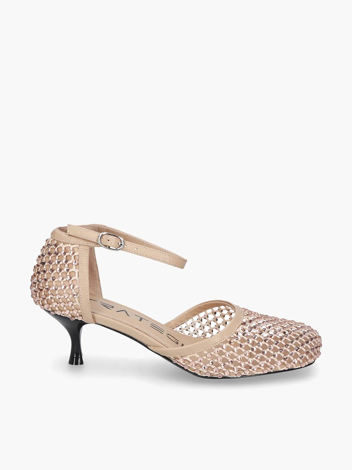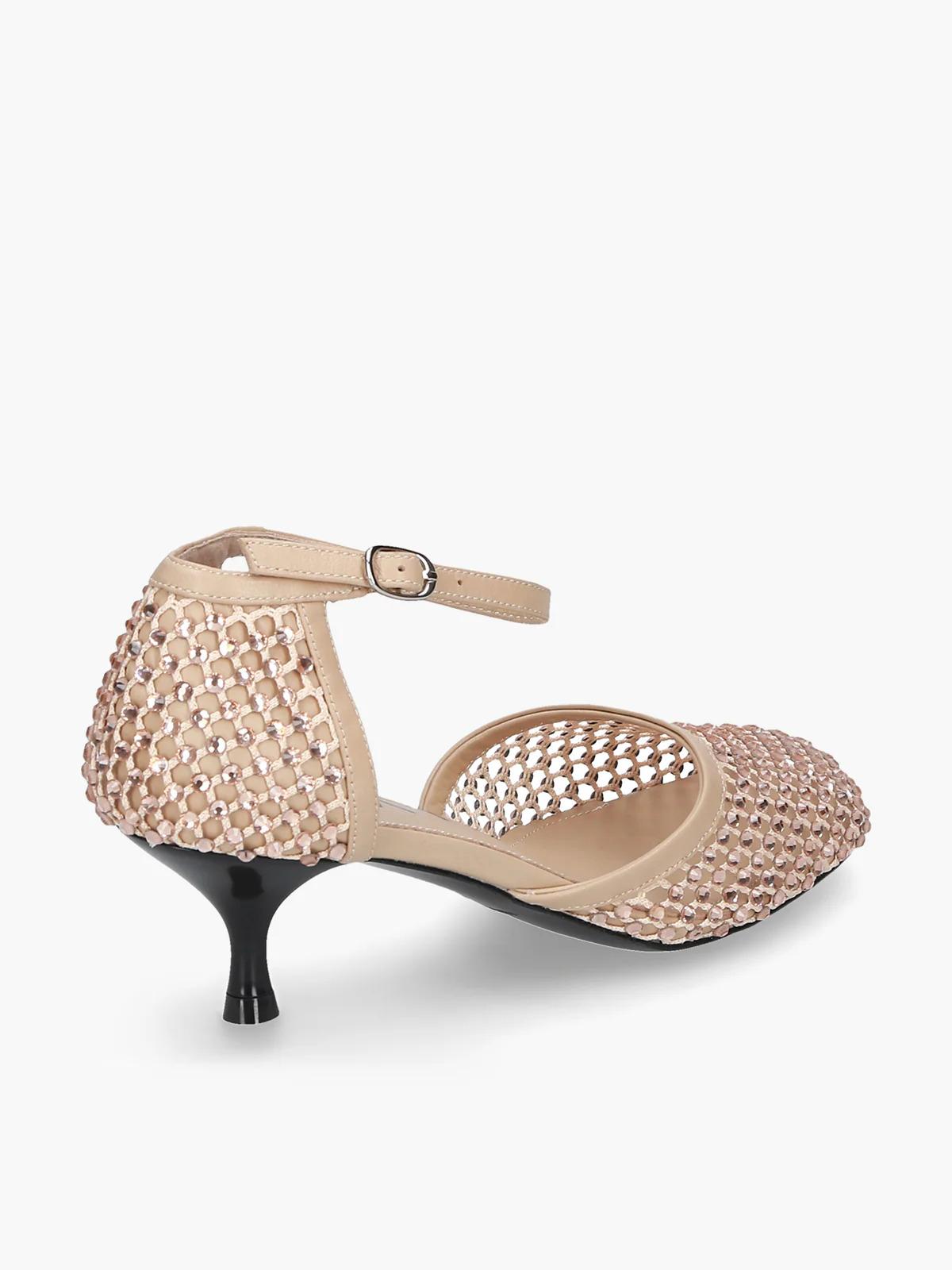 Décolleté Shiny Sand All Over Strass di STRATEGIA, tomaia in tessuto grigio, punta quadrata,completamente ricoperta di strass,cinturino alla caviglia,