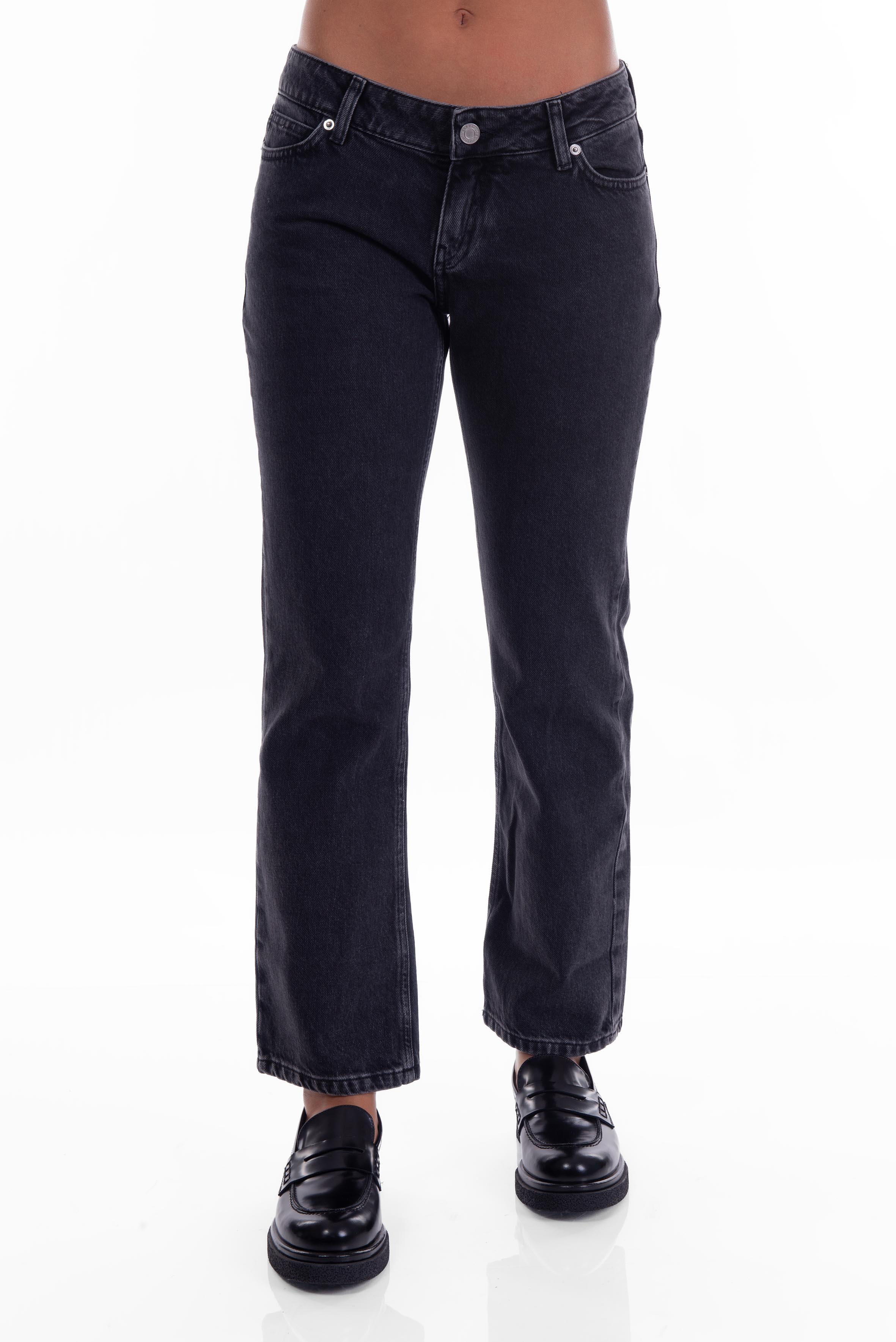 Pantalone 5 tasche in denim di Philosophy,dal taglio cropped, tasche posteriori impunturate con logo, vita bassa, chiusura frontale con zip coperta e bottone.