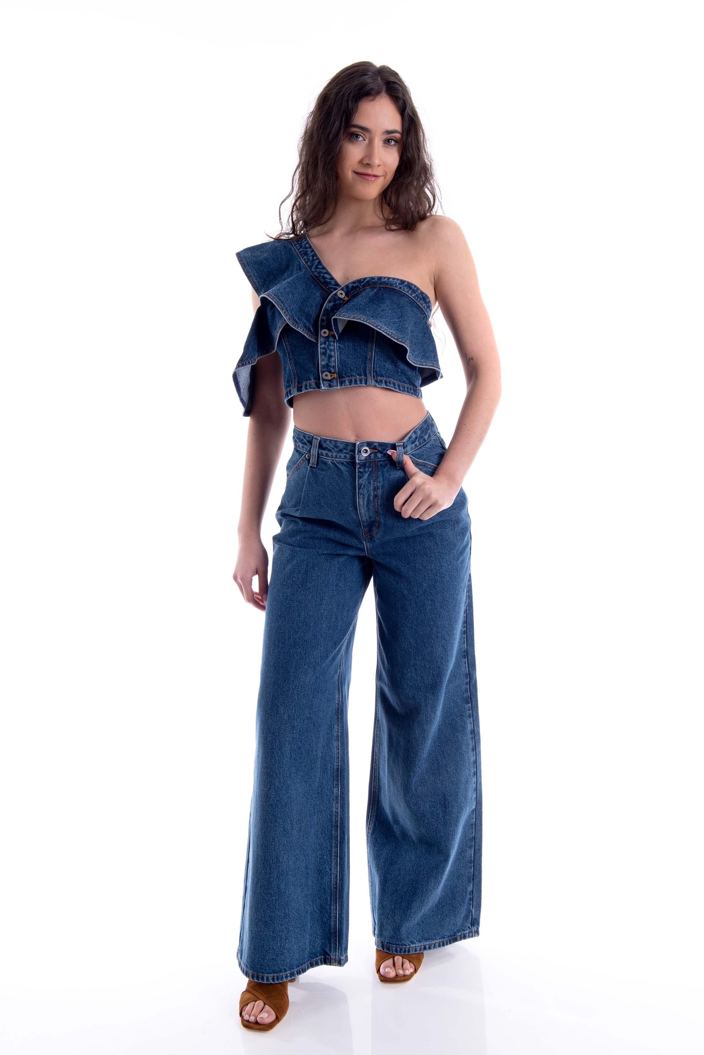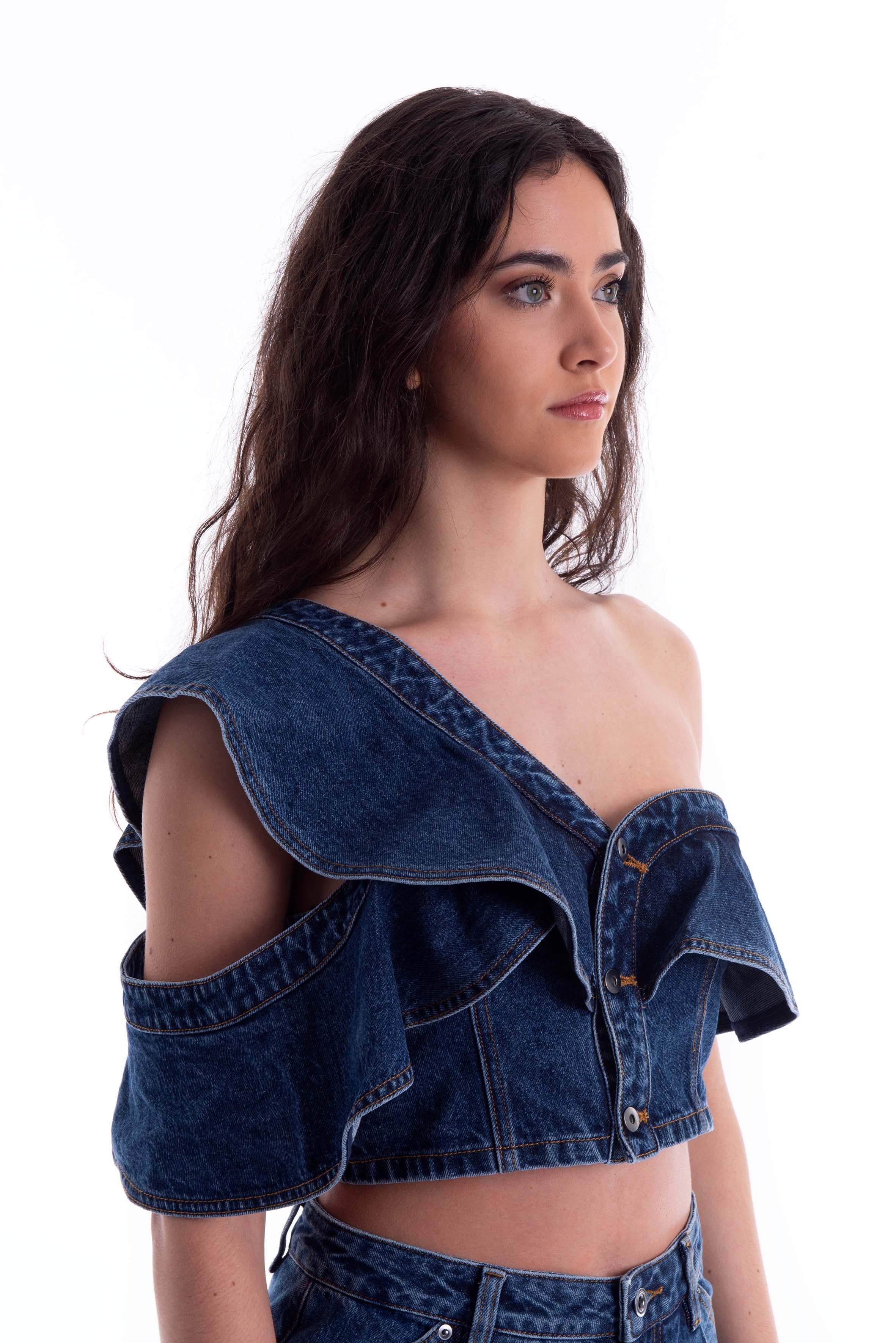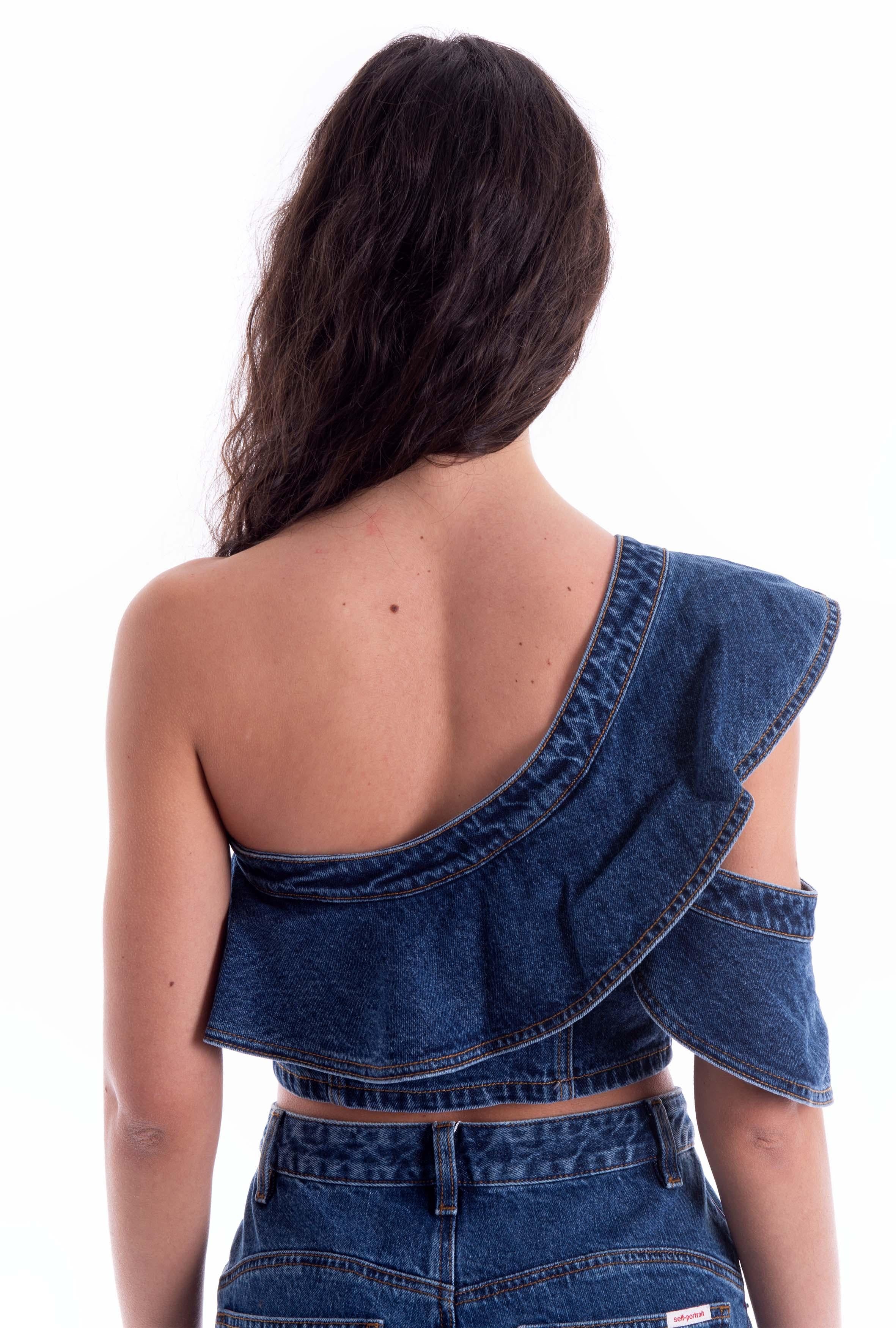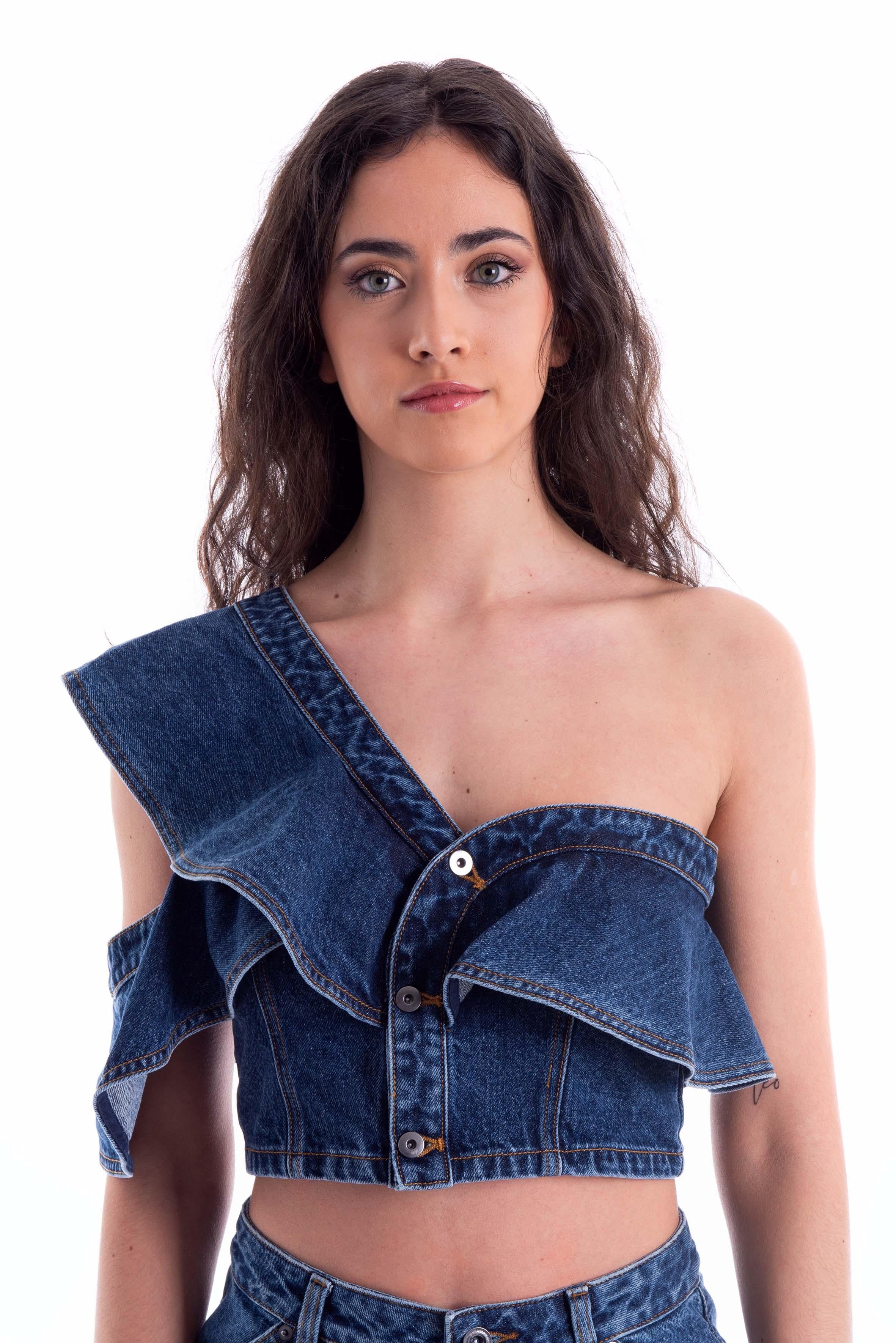 Top monospalla in denim