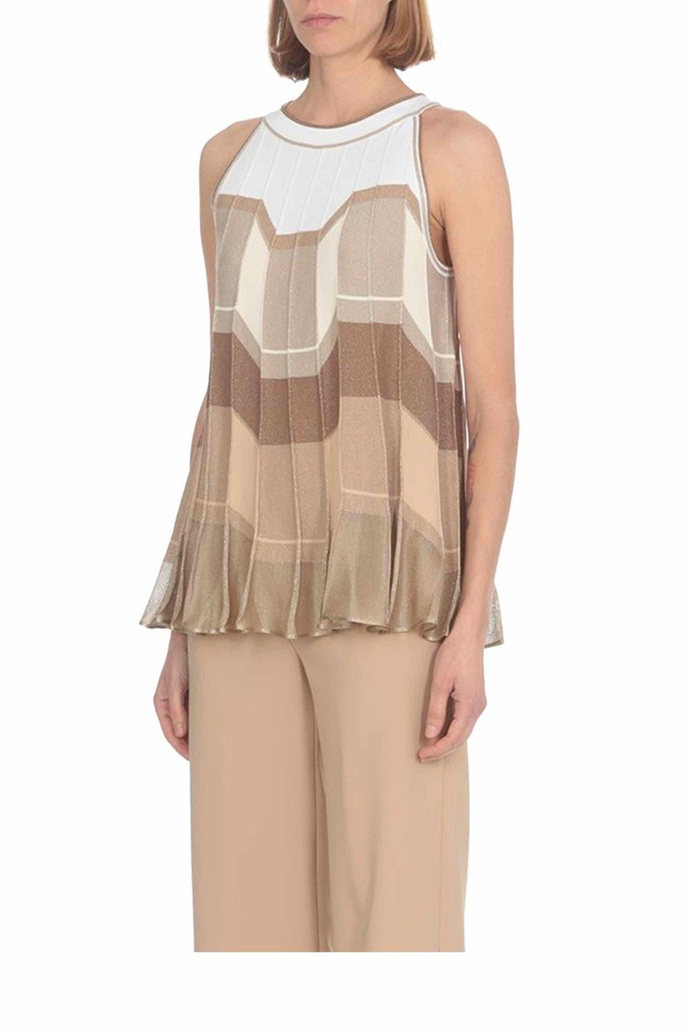 Top in maglia svasato lurex beige