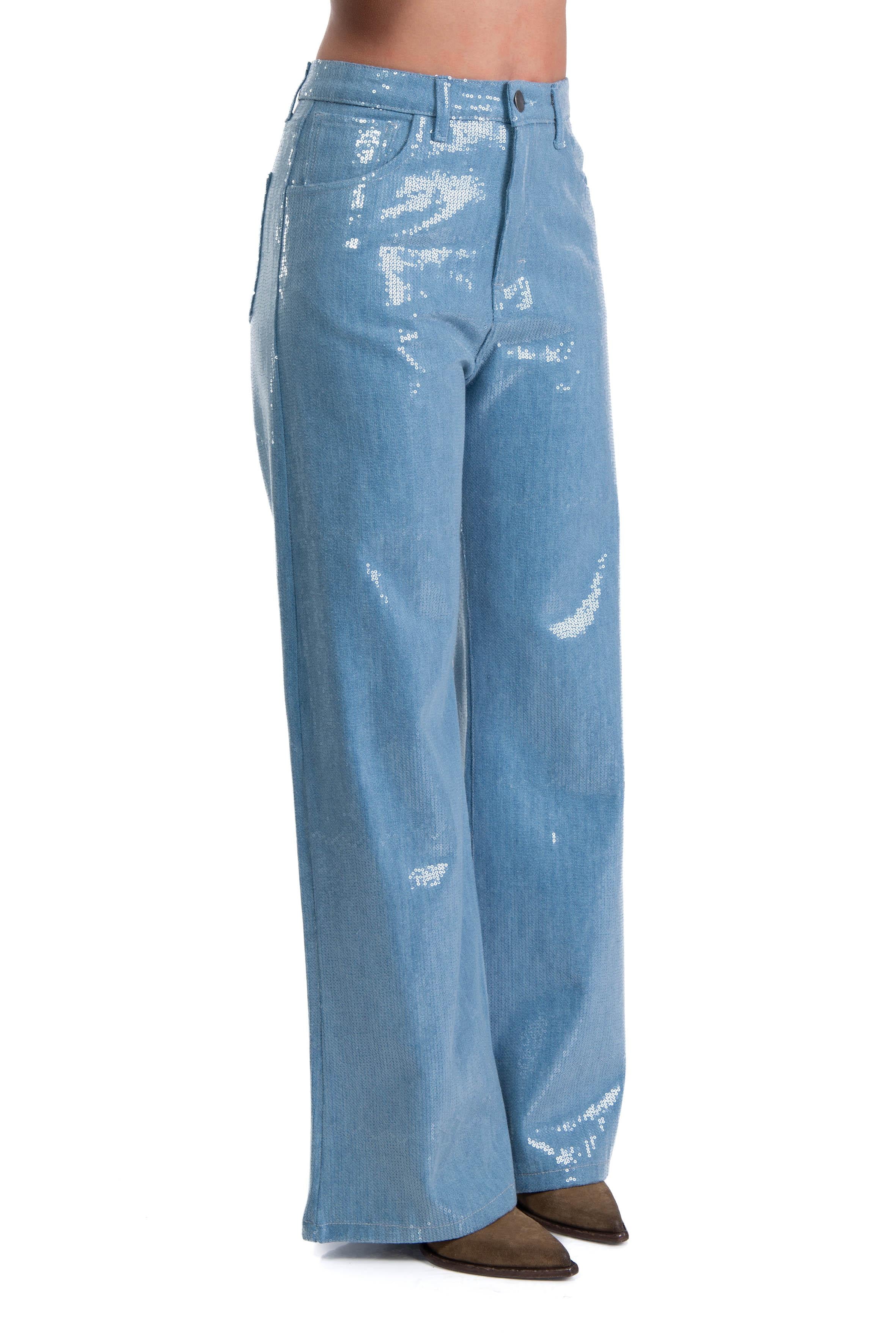 Jeans palazzo paillettes celeste