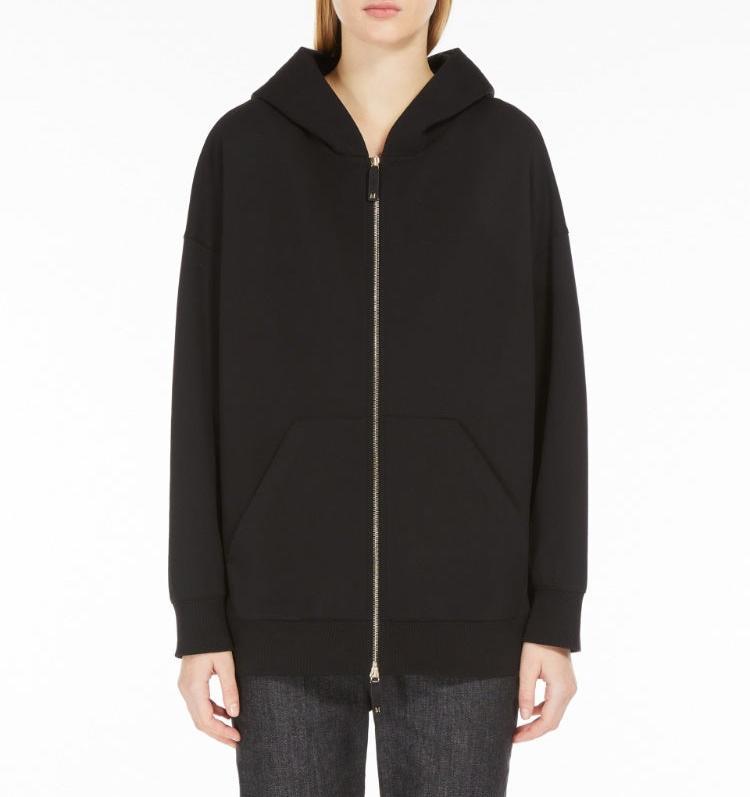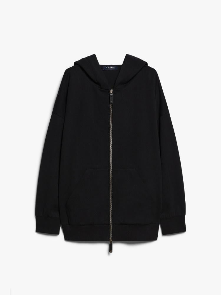 Felpa con cappuccio dalla vestibilità comoda di Max Mara, realizzata in morbido jersey di cotone. La silhouette è completata da maniche lunghe a giro basso, tasche marsupio sul davanti e bordi a costine. Personalizzata con logo Max Mara ricamato lungo tutto il bordo interno della felpa e del cappuccio. Chiusura frontale con zip a doppio cursore.