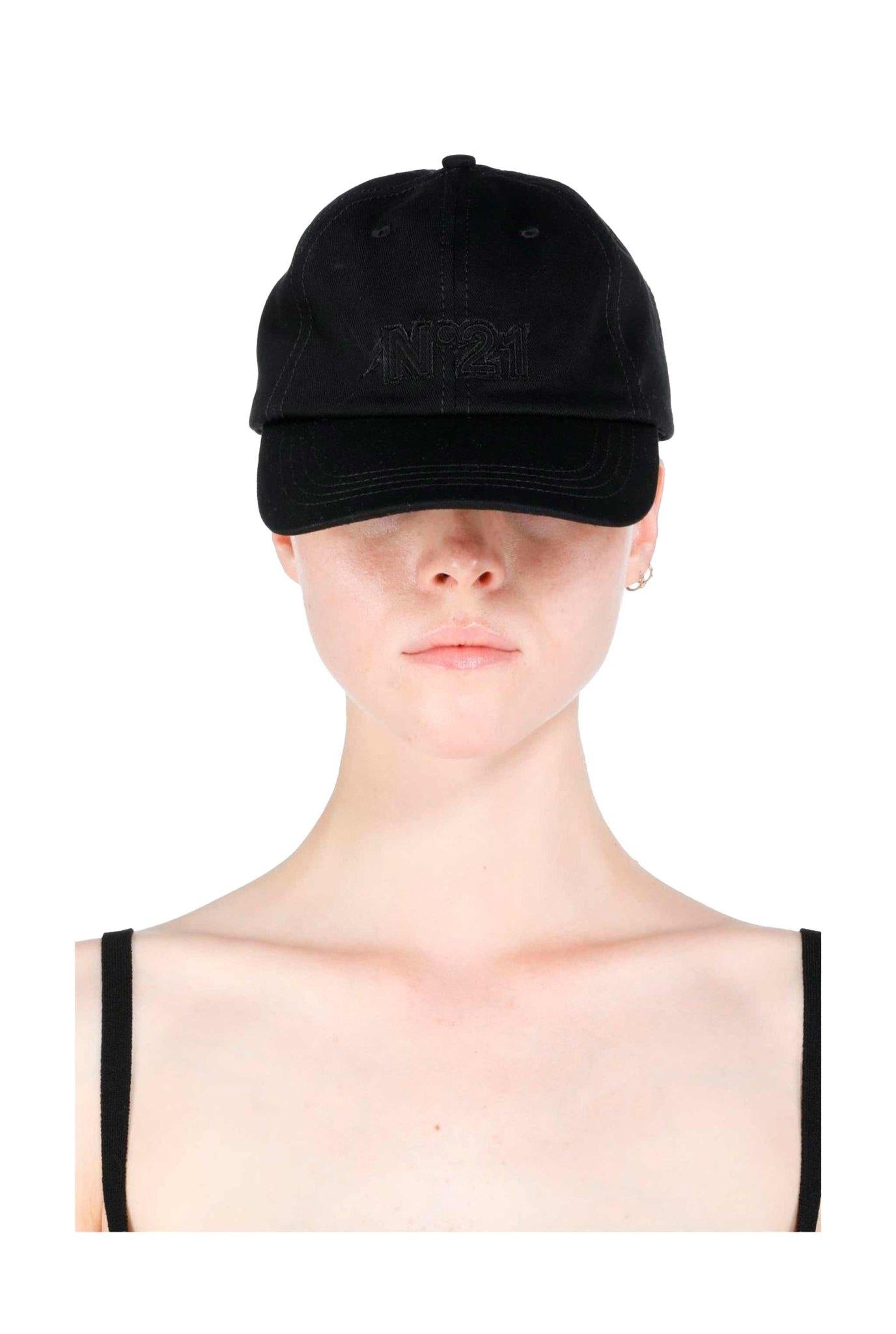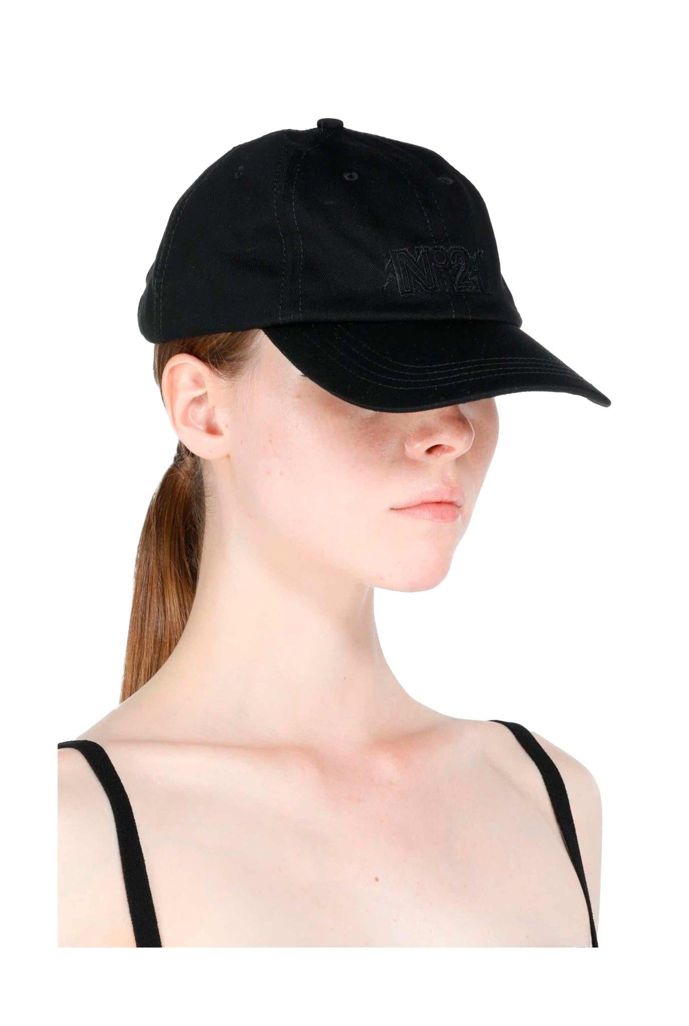 Cappello baseball con visiera in cotone nero con logo ricamato di N°21.