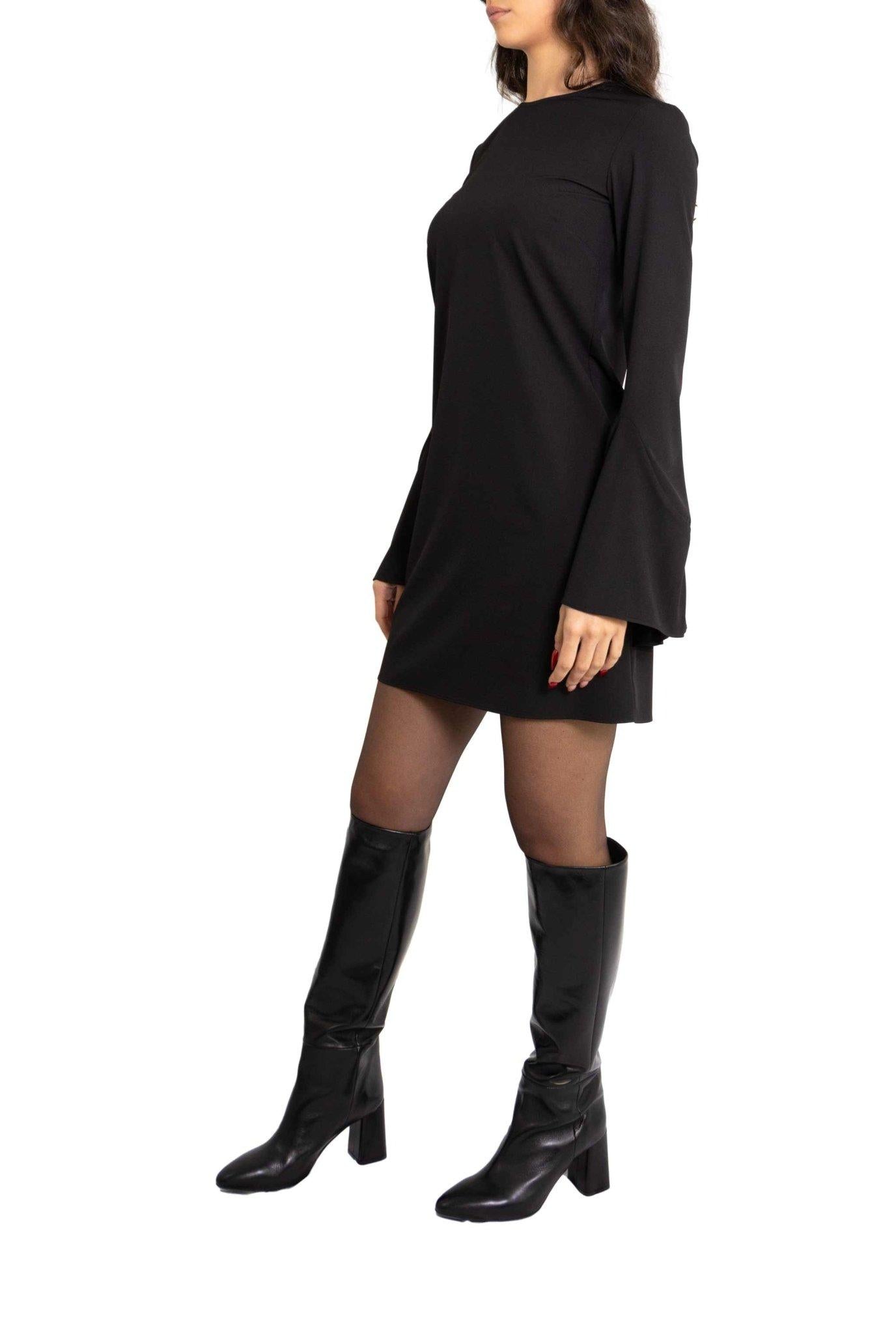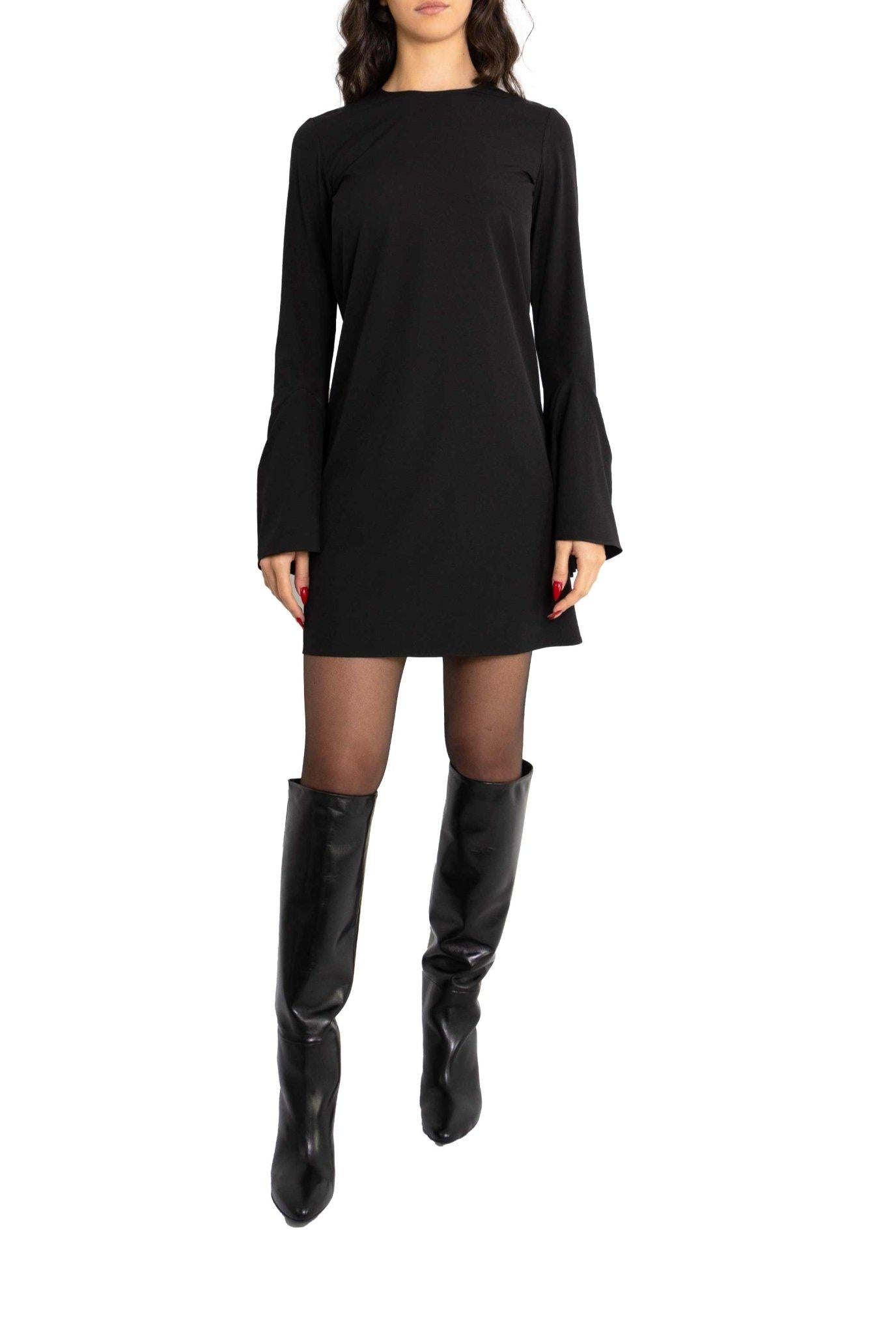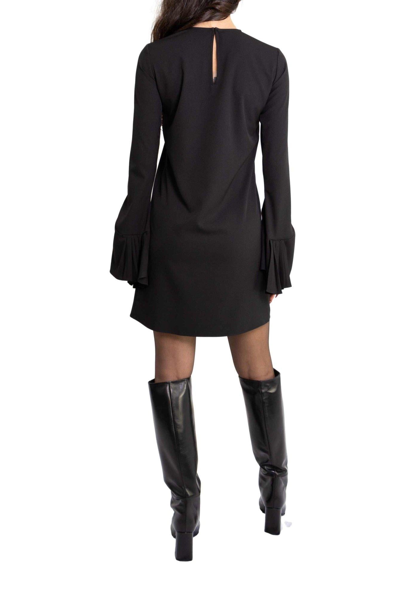 Modello girocollo, maniche lunghe con fondo a calla, chiusura posteriore con bottone.