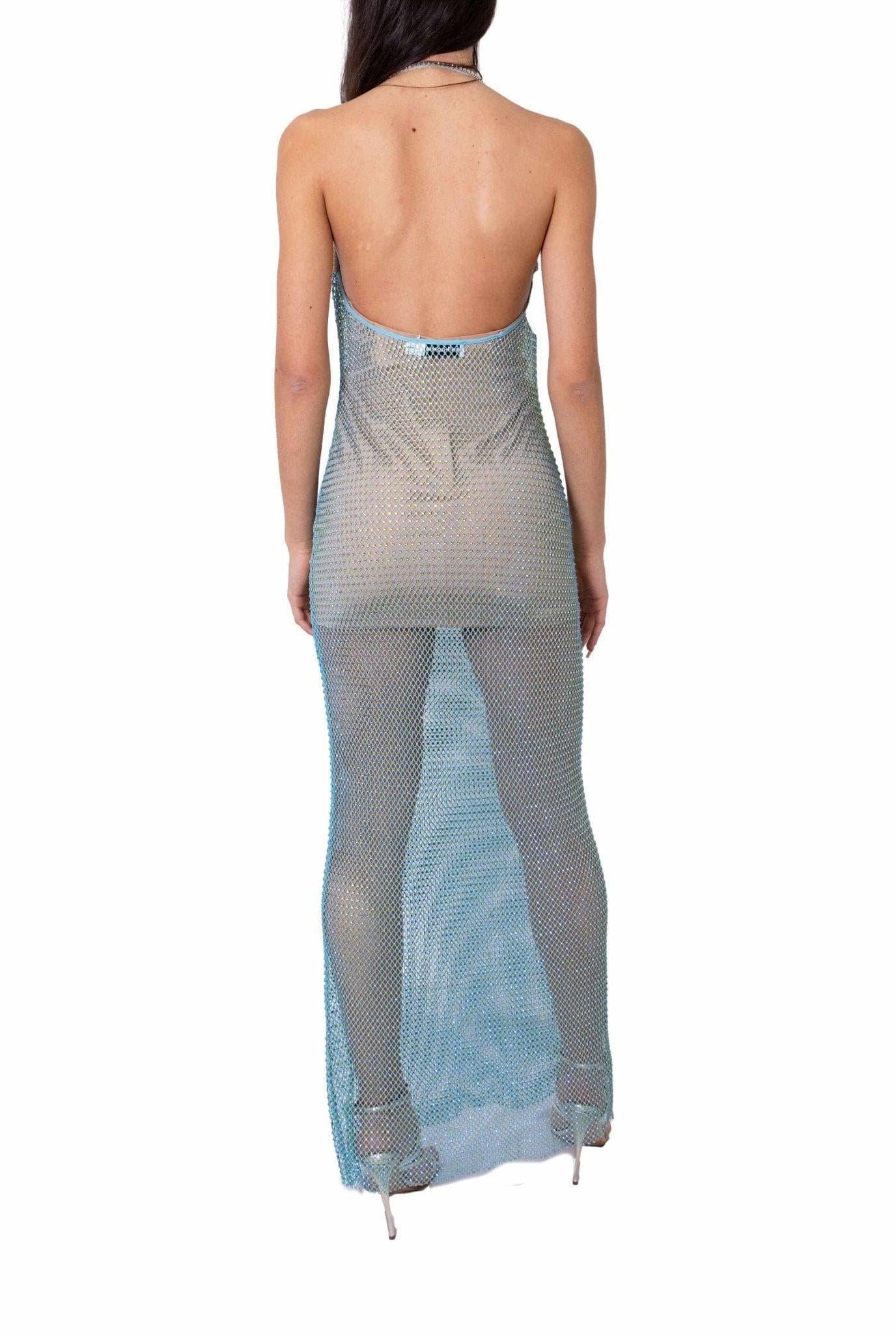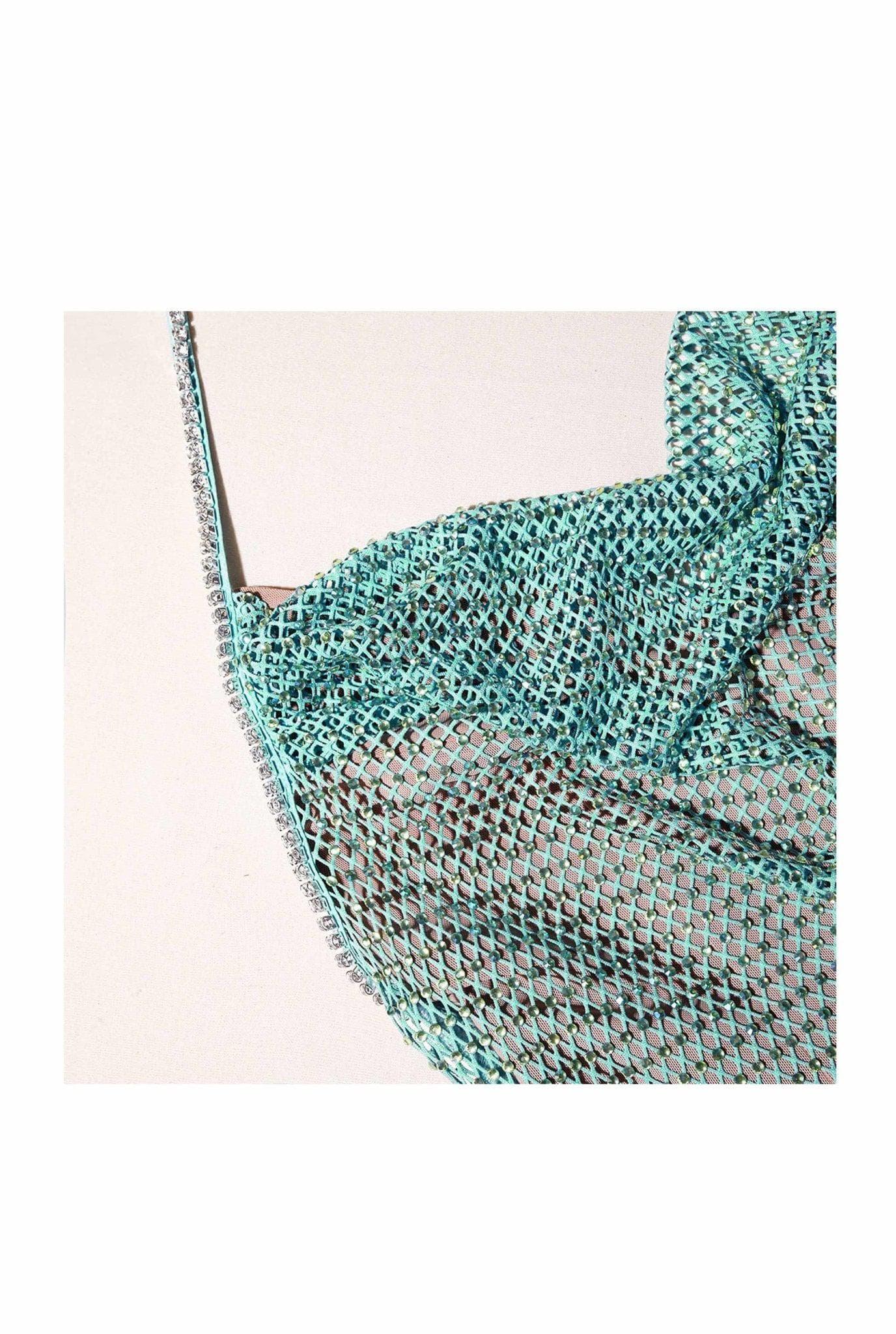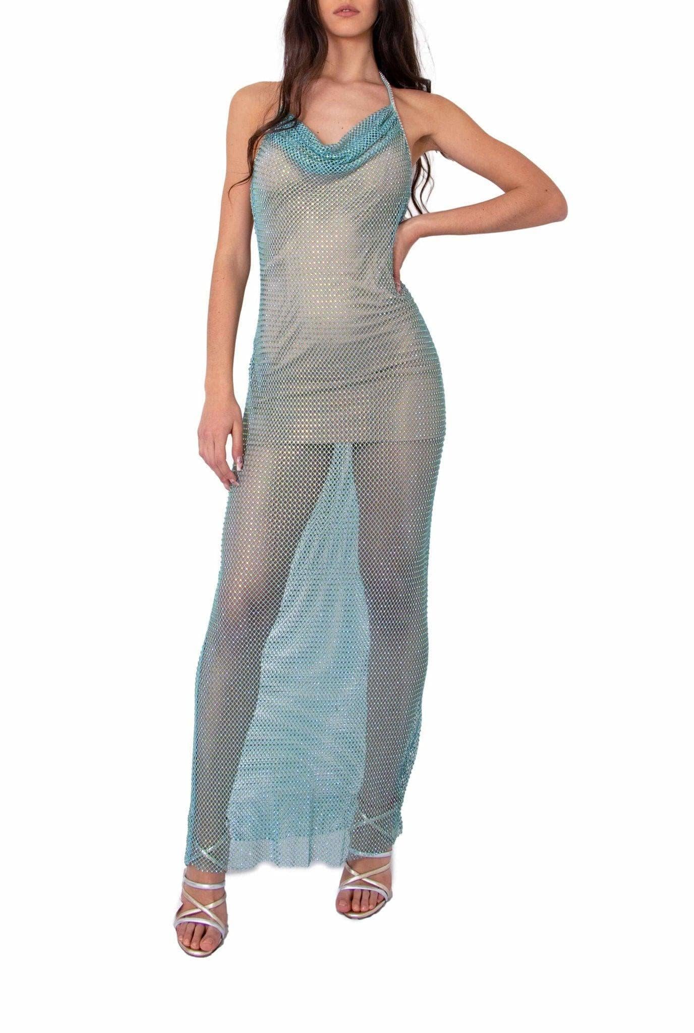 Abito in rete turchese con cristalli